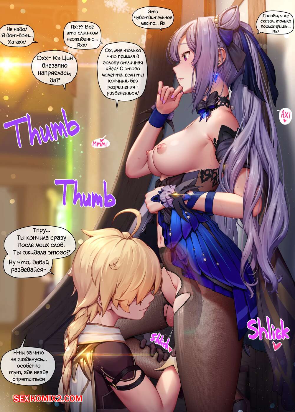 Порно комикс Genshin Impact. Кэ Цин. Keqing Горячая сисястая красотка брюнетка решила повеселиться со своим дружком. Она разделась перед ним и стала сосать его большой хуй, после чего раздвинула ножки и дала ему себя хорошенько выебать.
