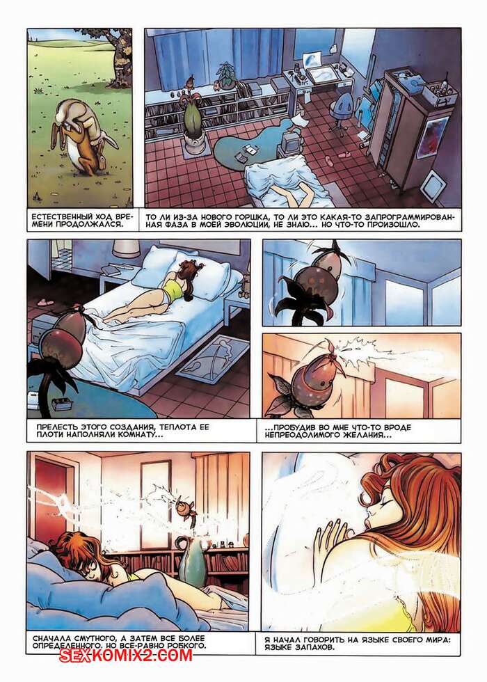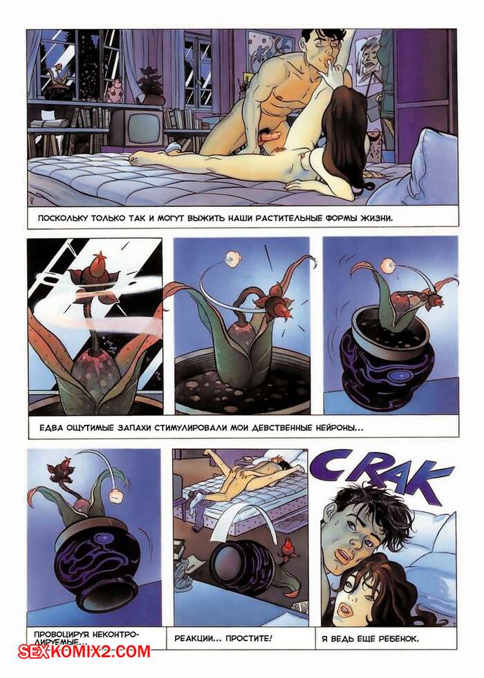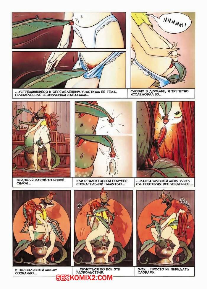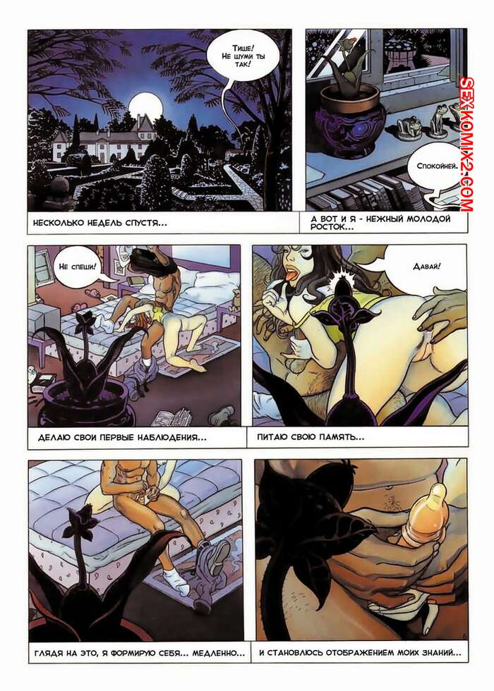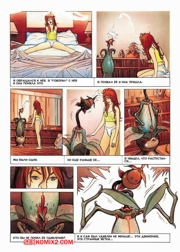 Порно комикс Влюбленный цветок У молодой горячей красотки брюнетки растет в комнате странное растение. Однажды девушка разделась прямо перед ним, поэтому оно протянуло к ней свои ветви и хорошенько трахнуло сучку.