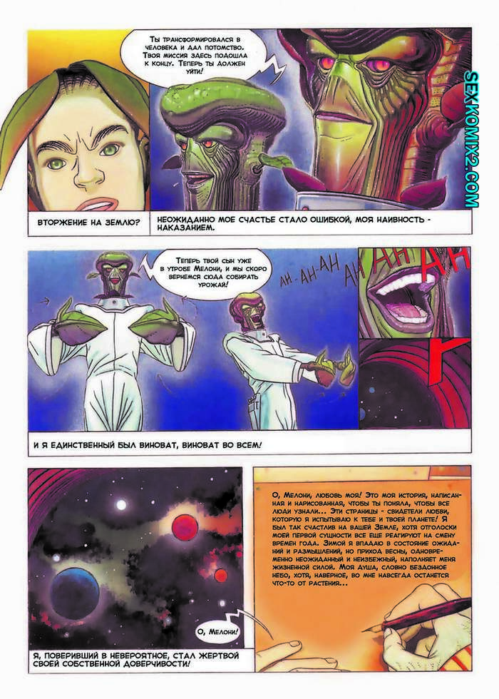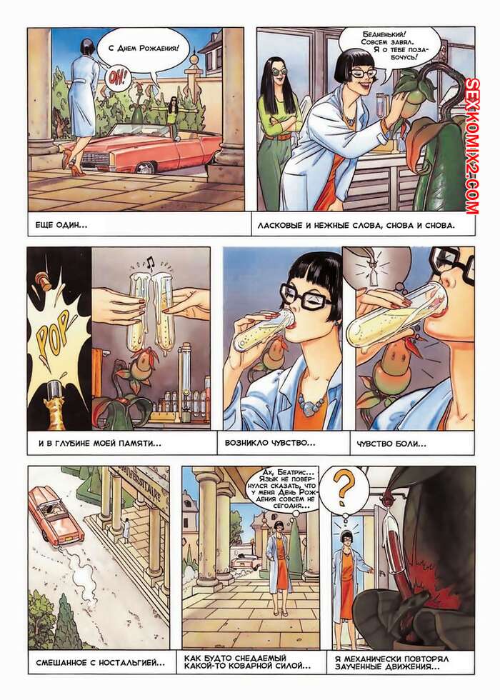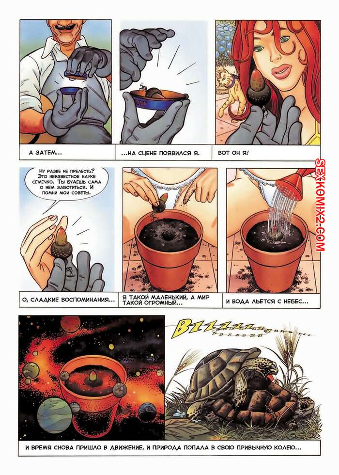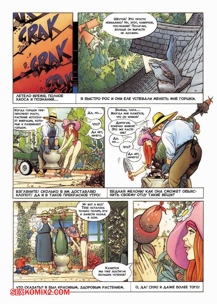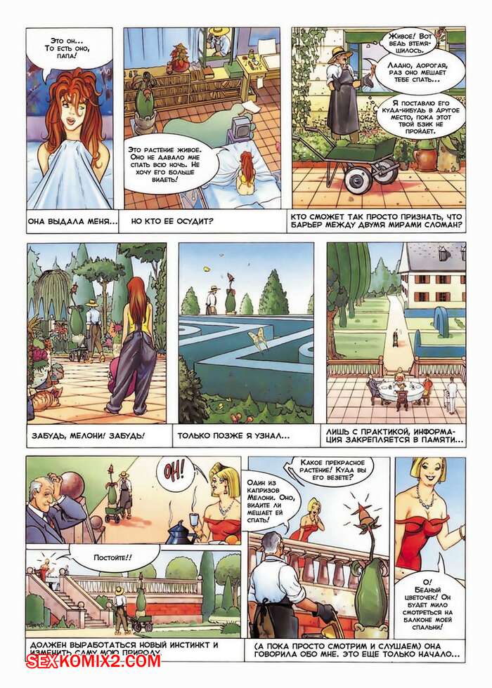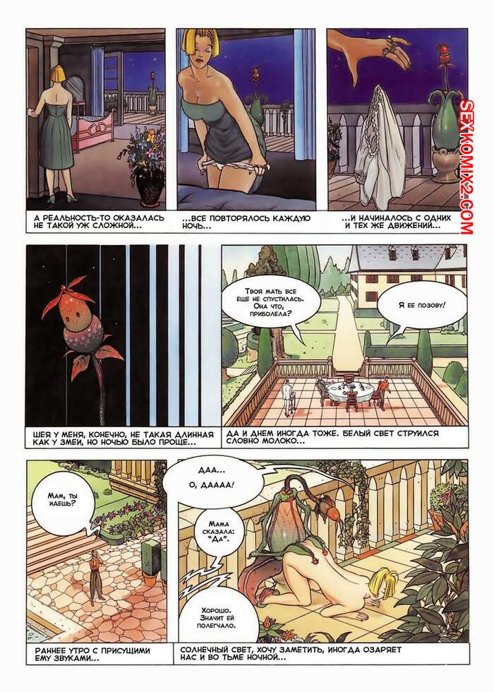 Порно комикс Влюбленный цветок У молодой горячей красотки брюнетки растет в комнате странное растение. Однажды девушка разделась прямо перед ним, поэтому оно протянуло к ней свои ветви и хорошенько трахнуло сучку.