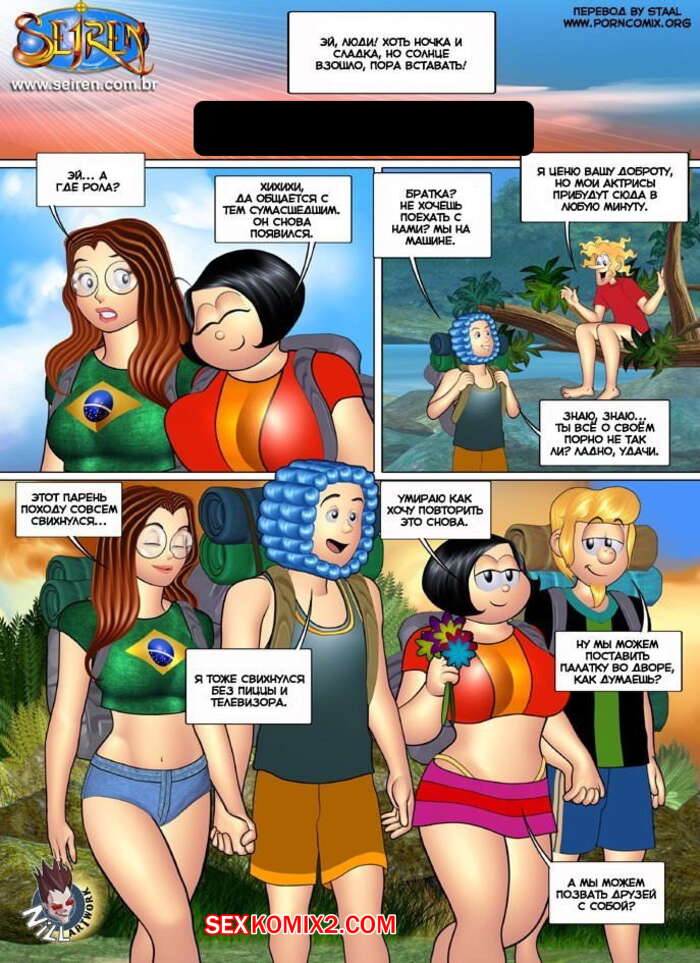 Порно комикс В походе с Тиной. Seiren Горячая сисястая брюнетка отправилась в поход со своими дружками и они решили там повеселиться. Красотки разделись и стали сосать большие хуи парней, после чего занялись страстной групповой еблей.