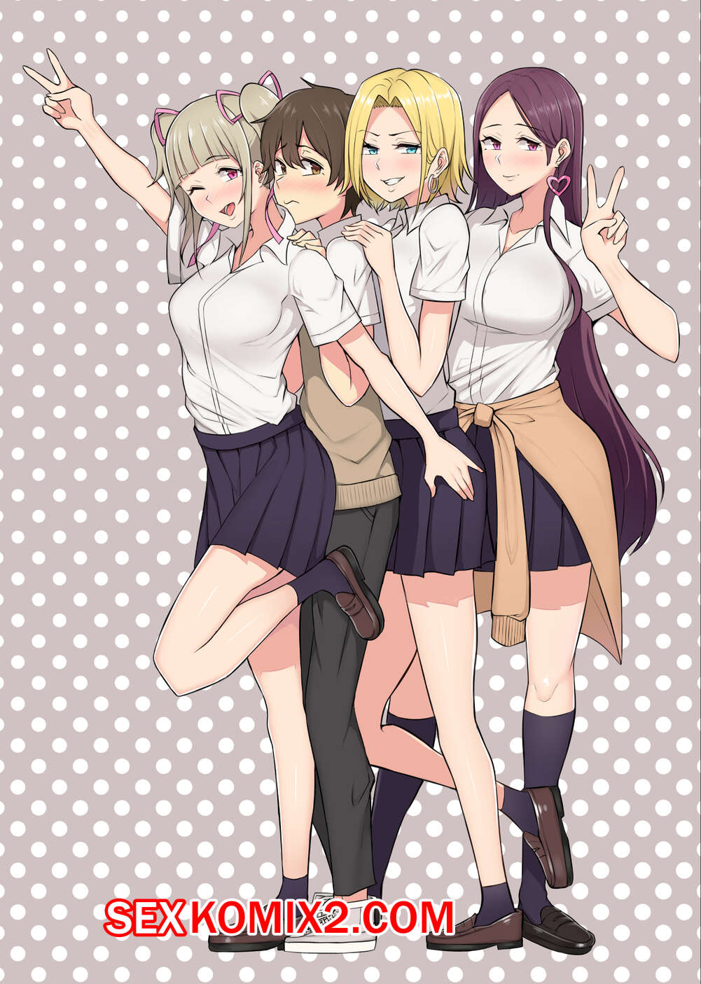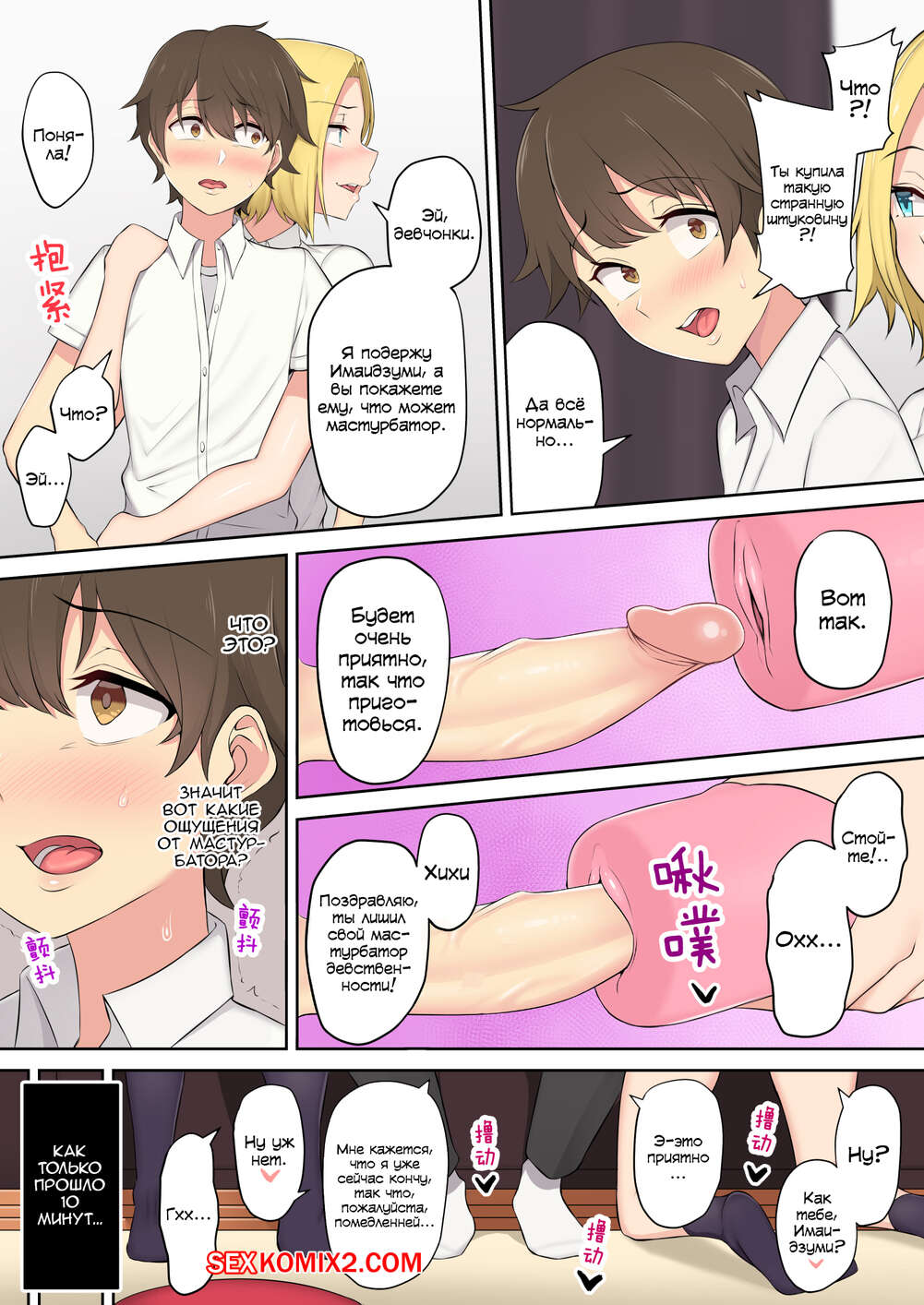 Порно комикс Дом Имаидзуми каким то образом стал местом тусовки для гяру. Часть 1.5 Экстра Горячие сисястые красотки студентки решили повеселиться со своим дружком. Они разделись перед ним и возбудили его, после чего стали дрочить его большой хуй мастурбатором.