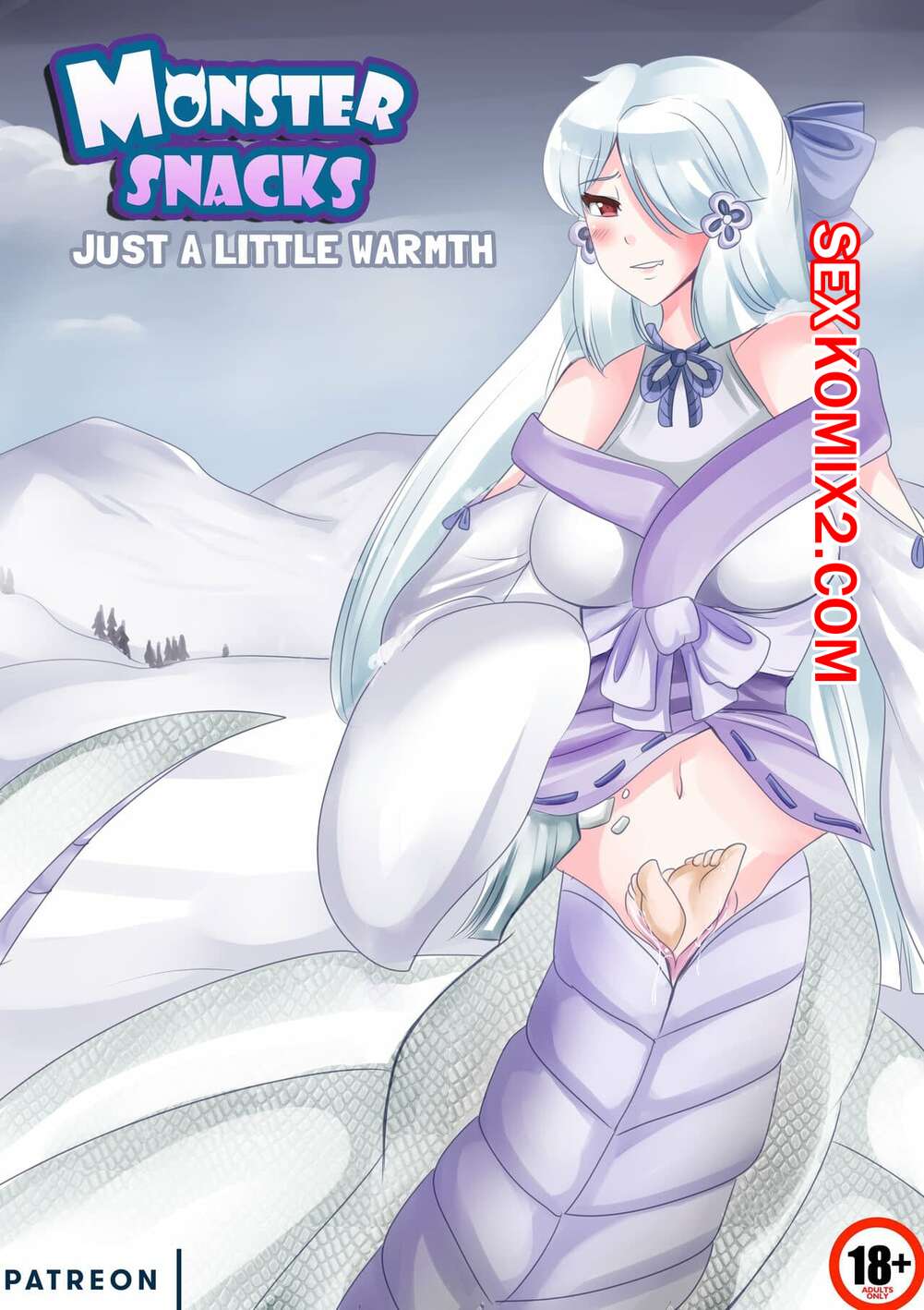Порно комикс Закуска для монстра и немного тепла. Monster snacks just a little warmth Горячая красотка блондинка попала в сильную вьюгу и очень замерзла. Ее нашла девушка с огромным хвостом, которая предложила ей залезть к ней в пизденку и согреться.