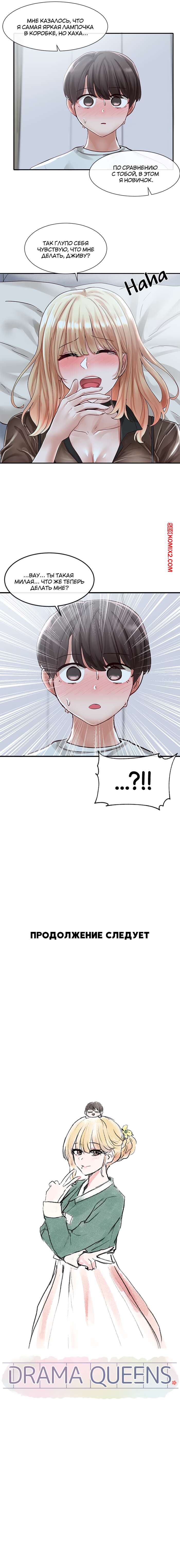 Порно комикс Театральный клуб. Части 67 и 68. Theater cociety Горячая сисястая блондинка осталась наедине с парнем и была очень возбуждена. Она стала его соблазнять и они начали страстно целоваться, после чего парень стал раздевать красотку.