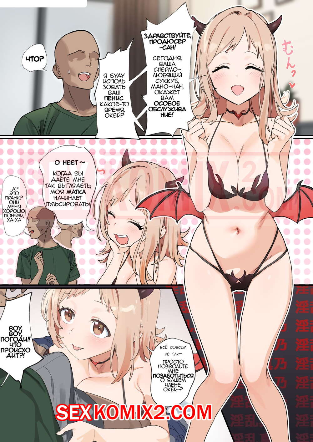 Порно комикс Делать непристойные вещи с Мано-чан. Аппетитная девушка суккуб, вся течет и трепещет перед огромным хуем своего друга. Она готова на все чтобы выпить его спермы.