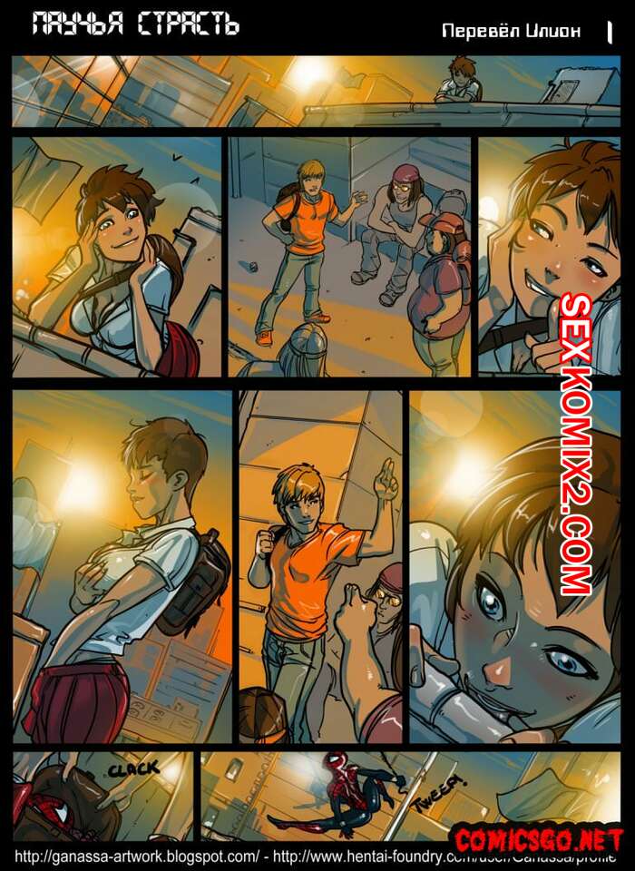 Порно комикс Паучья страсть. A Spiders Lust Горячая сисястая брюнетка Человек паук чертовски возбуждена и решила отправиться домой к своему дружку. Она разделась перед ним и стала сосать его большой хуй, после чего дала ему себя выебать.