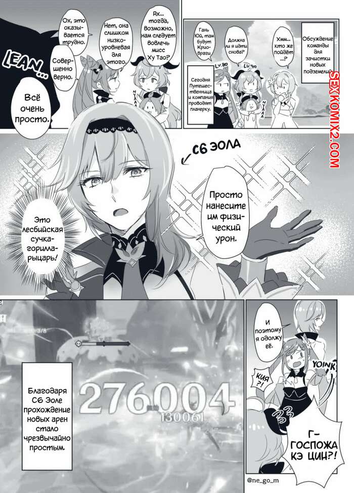 Порно комикс Genshin Impact. Negom Две горячие сисястые подруни очень возбуждены и хотят трахаться. Они раздеваются и ласкают друг дружку, после чего занимаются страстной лесбийской еблей, получая огромное удовольствие.