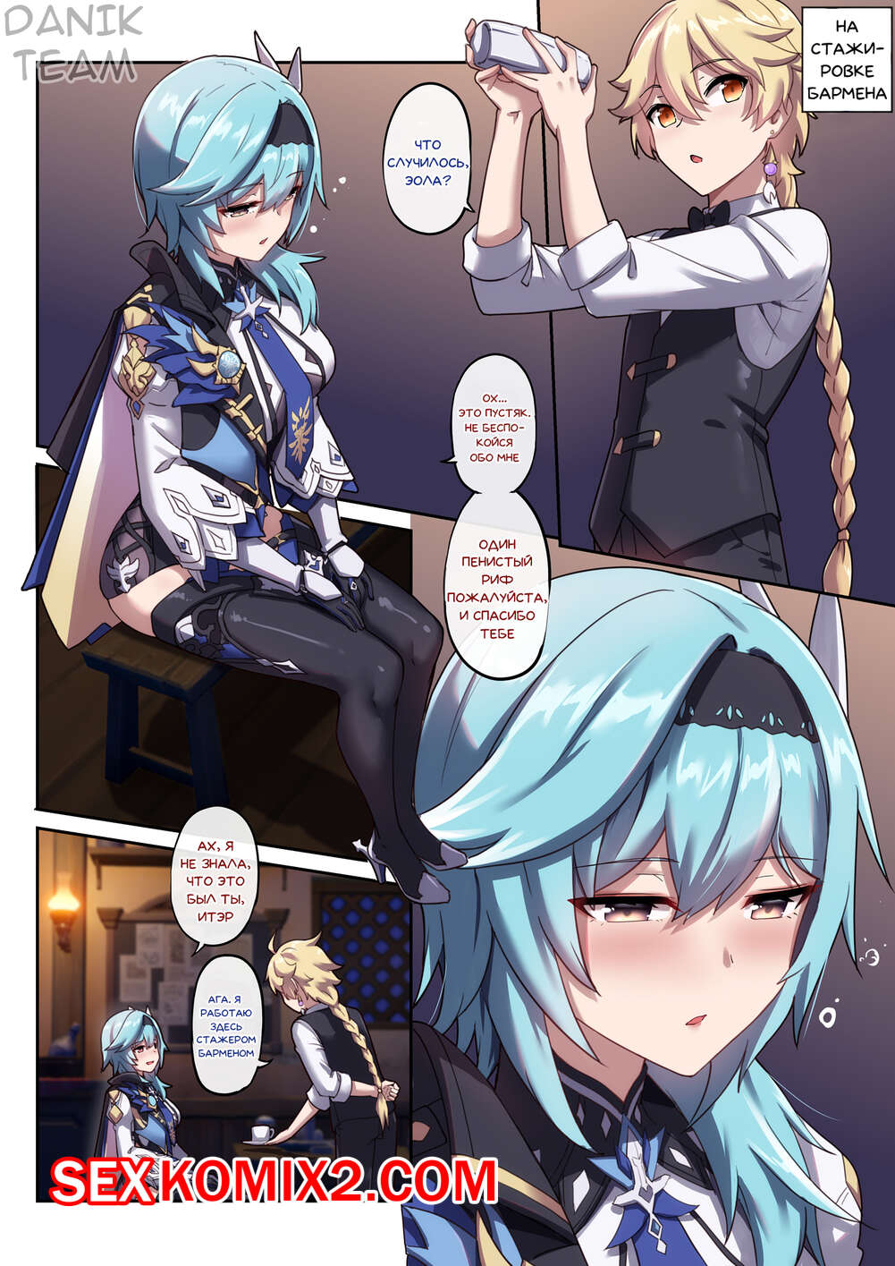 Порно комикс Genshin Impact. Пьяная выходка Эолы. Eulas Drunken Escapade Горячая сисястая блондинка была пьяна и решила повеселиться со своим дружком. Она разделась перед ним и стала сосать его большой хуй, после чего дала ему себя хорошенько выебать.