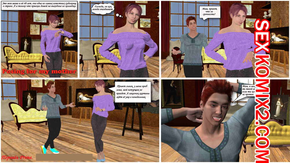 Порно комикс Позирование для моей мамочки. Posing For My Mother Сисястая милфа брюнетка попросила своего сына попозировать ей голым для картина. Она нарисовала парня, но возбудилась при виде его большого хуя. Сучка стала у него отсасывать, после чего дала ему себя выебать.