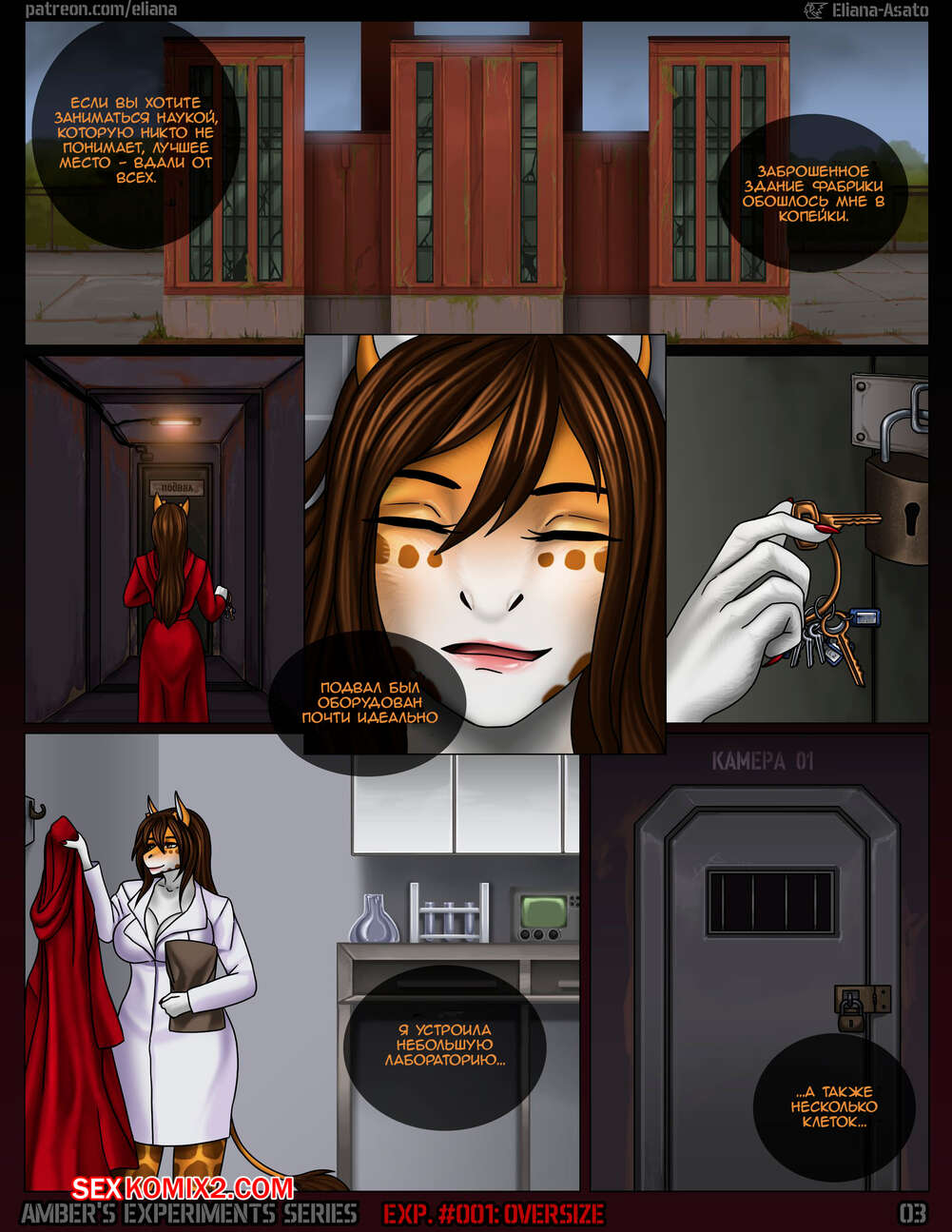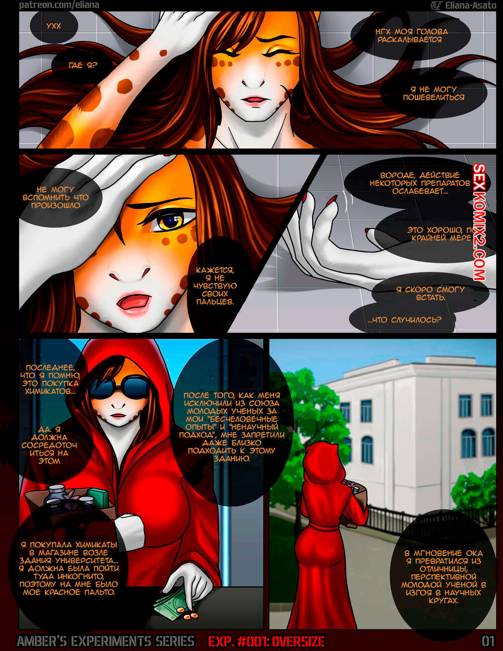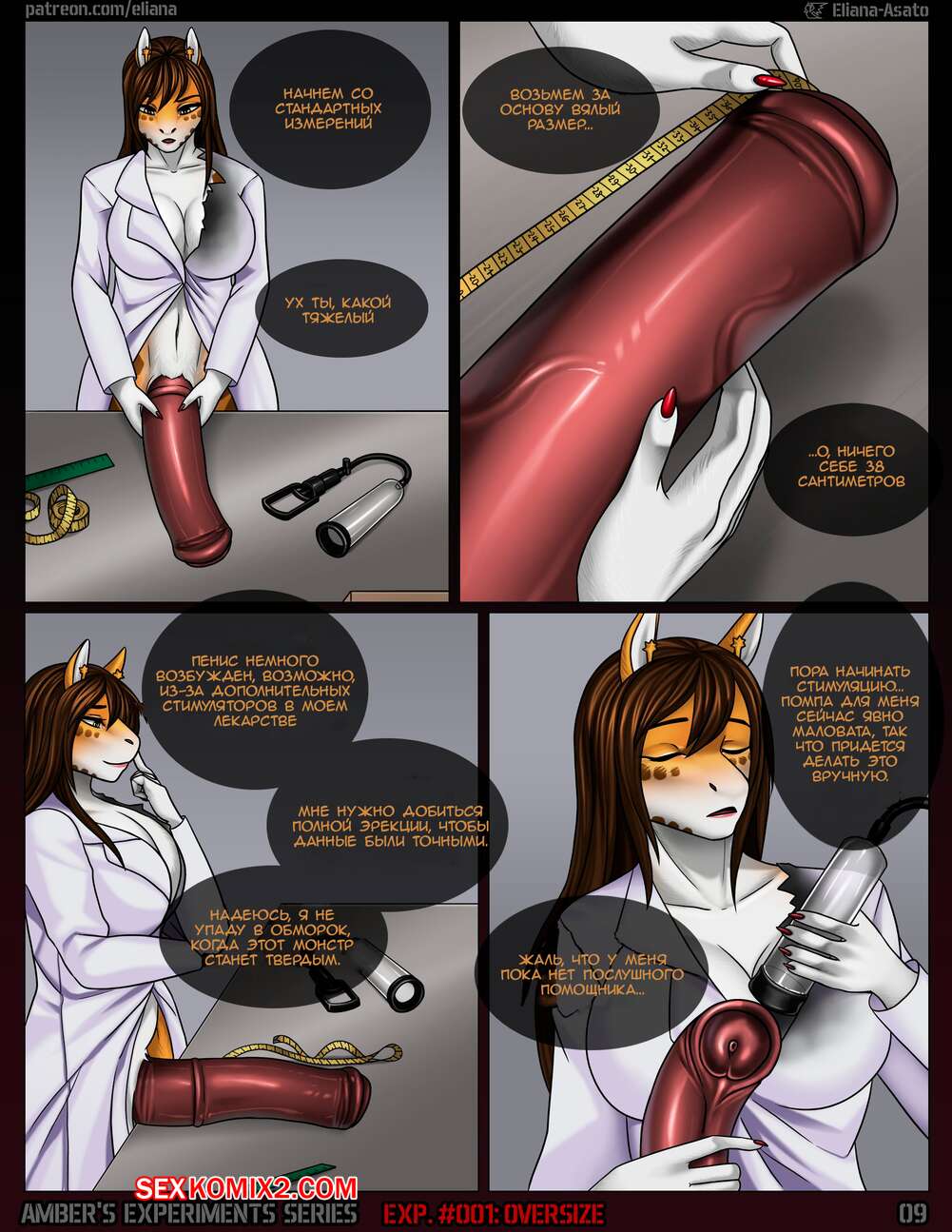 Порно комикс Серия экспериментов. Эмбер Ambers Experiments Series Горячая сисястая брюнетка решила устроить эксперимент. Она создала для себя сыворотку, с помощью которой отрастила себе большой хуй. Девушка сделала себе устройство, с помощью которого обильно кончила.