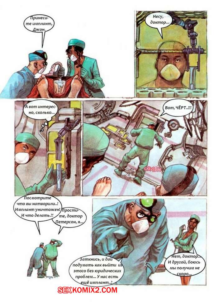 Порно комикс Ассистенты Во время операции пациентка и доктор решили повеселиться с горячей красоткой на столе. Ассистентка стала сосать большой хуй парня, после чего он хорошенько выебал свою пациентку.