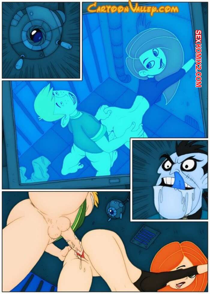 Порно комикс Ким. В ловушке Горячая рыжая красотка Ким и ее дружок Рон оказались в ловушке, но это их не расстроило и они решили повеселиться. Красотка разделась и стала сосать хуй парня, после чего дала ему себя выебать.