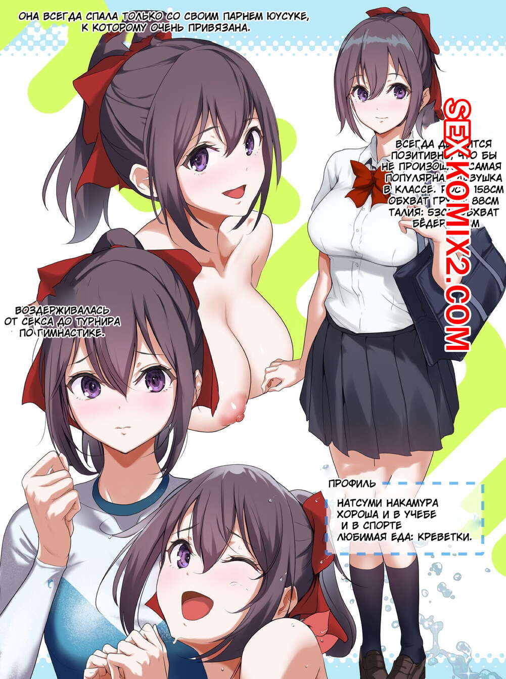 Порно комикс Моя гордость. Ore no Jiman. Nylon Горячая сисястая брюнетка обожает трахаться. Она соблазняет парней своим шикарным телом и возбуждает их, после чего хорошенько у них отсасывает и дает им себя хорошенько выебать.