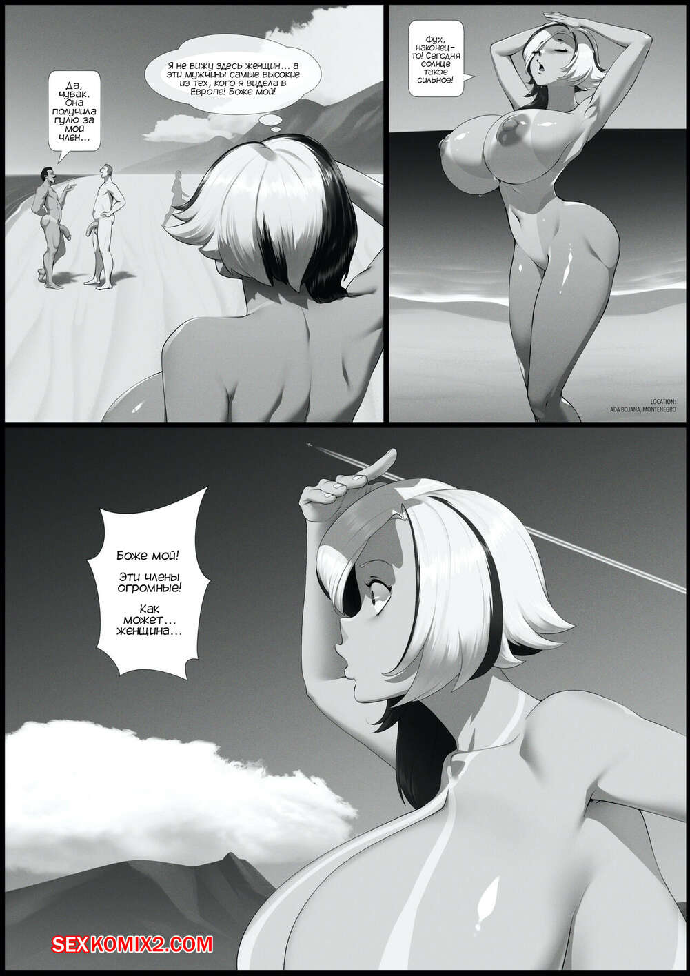 Порно комикс Оплодотворение на нудистском пляже. Nudist Beach Fertilization. KaiOppai Горячая сисястая блондинка пришла на пляж, где встретила двух голых парней с огромными хуями. Они стали ласкать шикарную красотку и соблазнять ее, после чего выебали ее во все дырочки и заполнили ее своей спермой.
