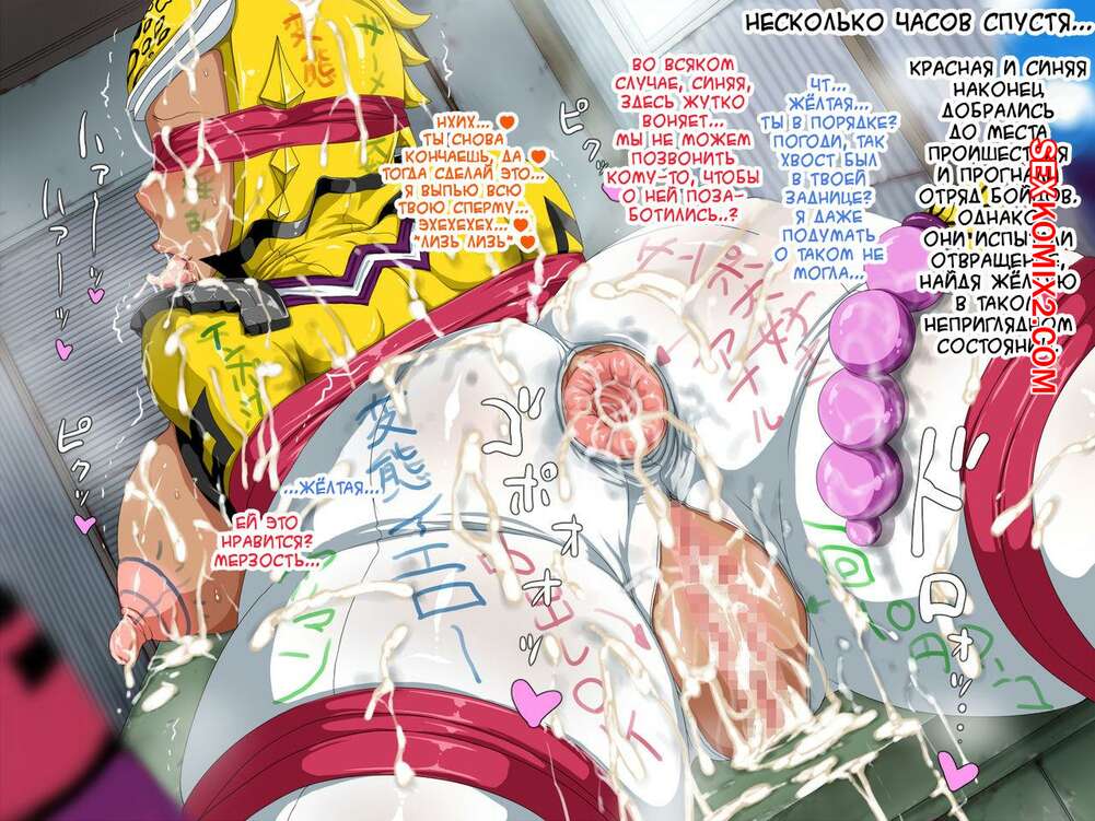 Порно комикс Kyonyuu Sentai Sangalkan Yellow Enkou Hen. Гяру версия Горячие сисястые красотки очень возбуждены и хотят трахаться. Они раздеваются перед своими дружками с большими хуями и хорошенько у них отсасывают, после чего дают им себя выебать.