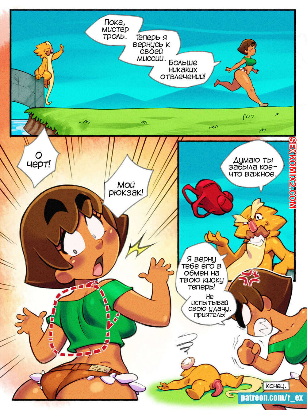 Порно комикс Лора и мост троллей. Lora and the Troll Bridge Горячей сисястой брюнетке требовалась пересечь мост, но ей стал мешать троль охраник моста. Он предложил девушке сыграть в игру, на что красотка согласилась, после чего ее хорошенько выебали в задницу.