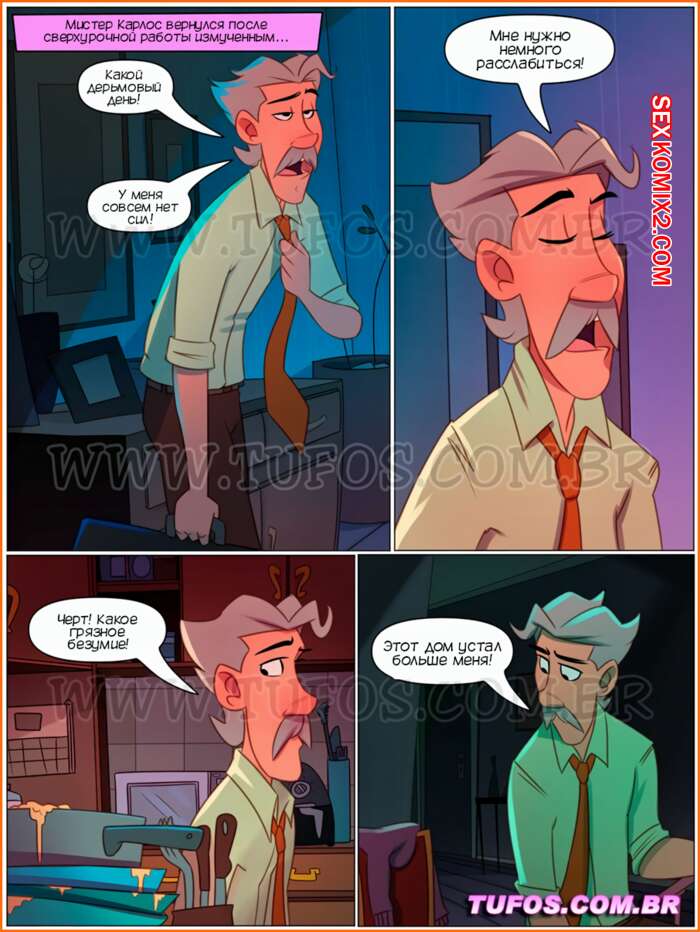 Порно комикс Четверо похотливых. Часть 3. Борода, волосы и усы. As 4 sacanas. Tufos Карлос вернулся домой уставший после работы, а его жена совсем не ждала мужа. Он отправился на встречу со своей горничной и там его ждал незабываемый секс с тремя красотками.