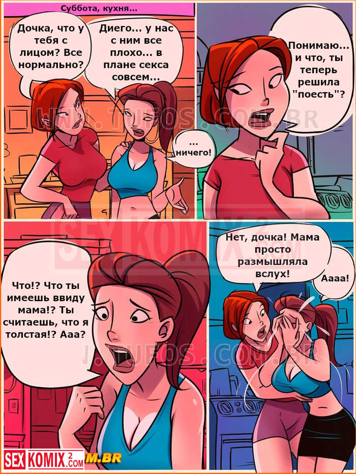Порно комикс Дом Джоаны. Часть 1. Подруга осталась со своим женатым другом ночью, а ночью, пока она спала, соблазнила мужа на кухне.