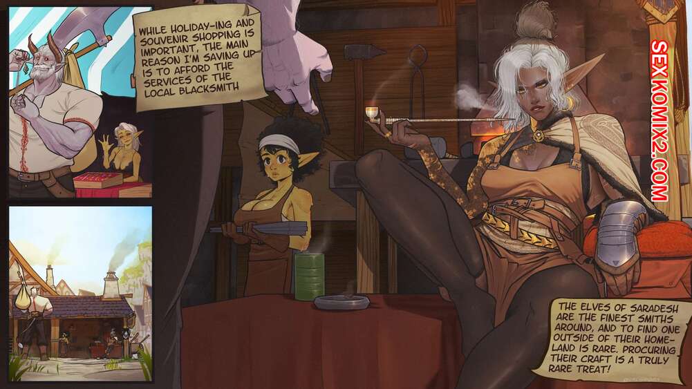 Порно комикс Чувственные виды и звуки города гоблинов. OrcBarbies Горячие красотки с большими хуями просто без ума от ебли с парнем. Красотки частенько встречаются с ним, чтобы хорошенько у него отсосать и дать ему себя выебать.