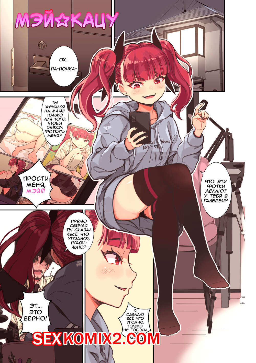 Порно комикс Мэй и Кацу. Yoshio Ereki Отец просто без ума от своей сексуальной дочери. Они остались дома одни и красотка встала на колени перед папочкой, после чего отсосала его большой хуй и дала ему кончить себе в ротик.
