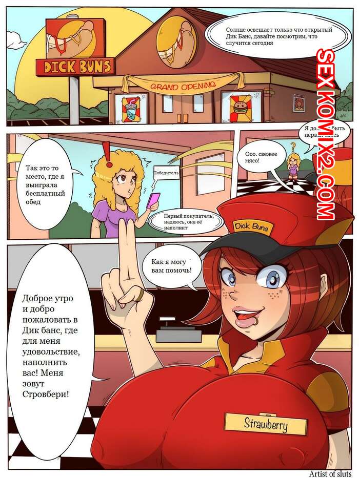 Порно комикс Dick Buns. Часть 1. Artist of Sluts Горячая сисястая брюнетка работает в магазине. К ней пришла сексуальная клиентка блондинка и девушка решила с ней хорошенько повеселиться, выебав горячую красотку в ротик.