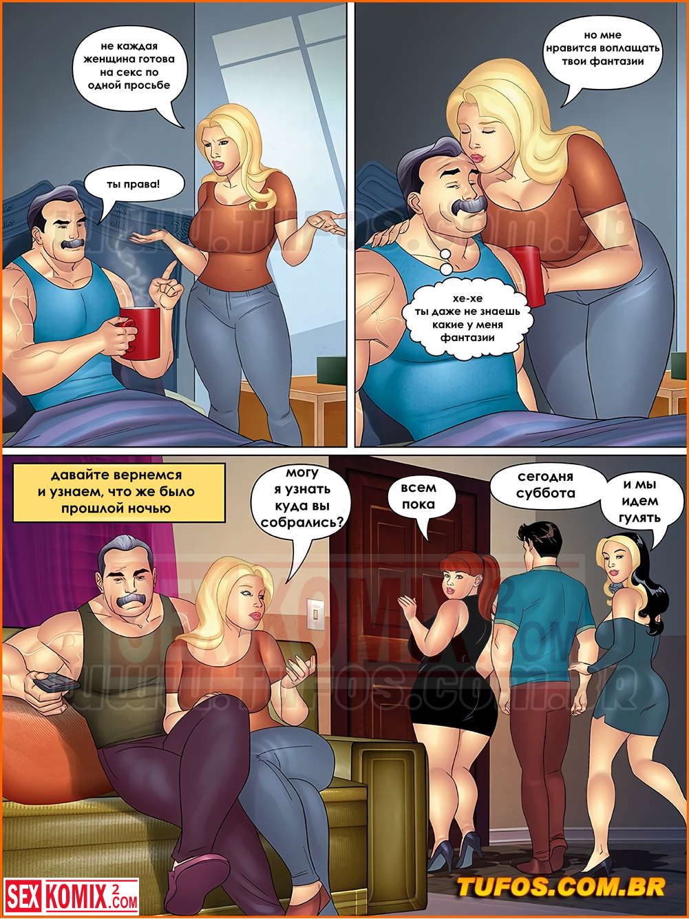 Порно комикс Тетя, кузины и племянник. Часть 14. Секс втроем. Субботним вечером все пошли на прогулку и Роберто решил воспользоваться этим и позвать Линда в мотель для секса втроем. Тем более она ему давно это обещала.