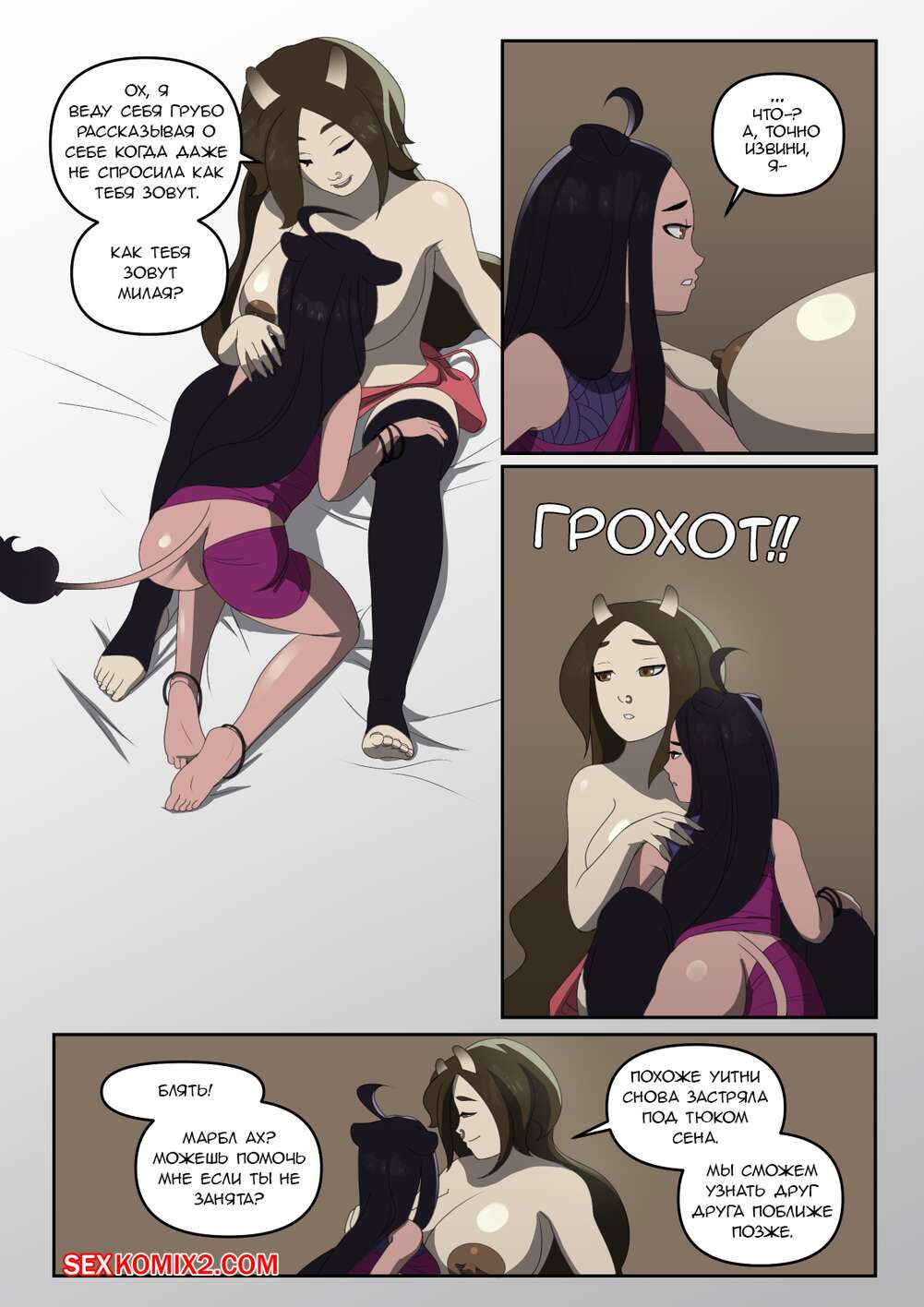 Порно комикс Corruption Of Champions. For Ingnam. Часть 4. 5kun Горячие сисястые брюнетки были очень возбуждены и хотели трахаться. Они разделись и стали ласкать друг дружку, после чего занялись страстной лесбийской еблей.