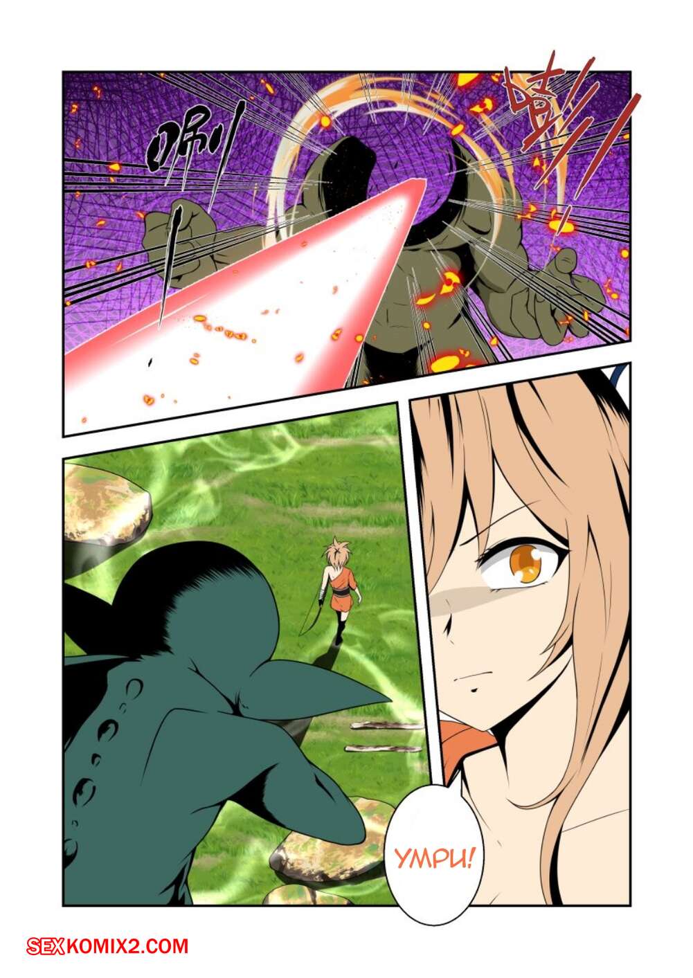 Порно комикс Genshin Impact. Война в Иназуми. Часть 1. Inazuma War. Fyxfd На горячую сексуальную брюнетку напал монстр и решил повеселиться с девушкой. Он уложил ее на землю и раздел, после чего хорошенько выебал сучку, лишив ее девственности.