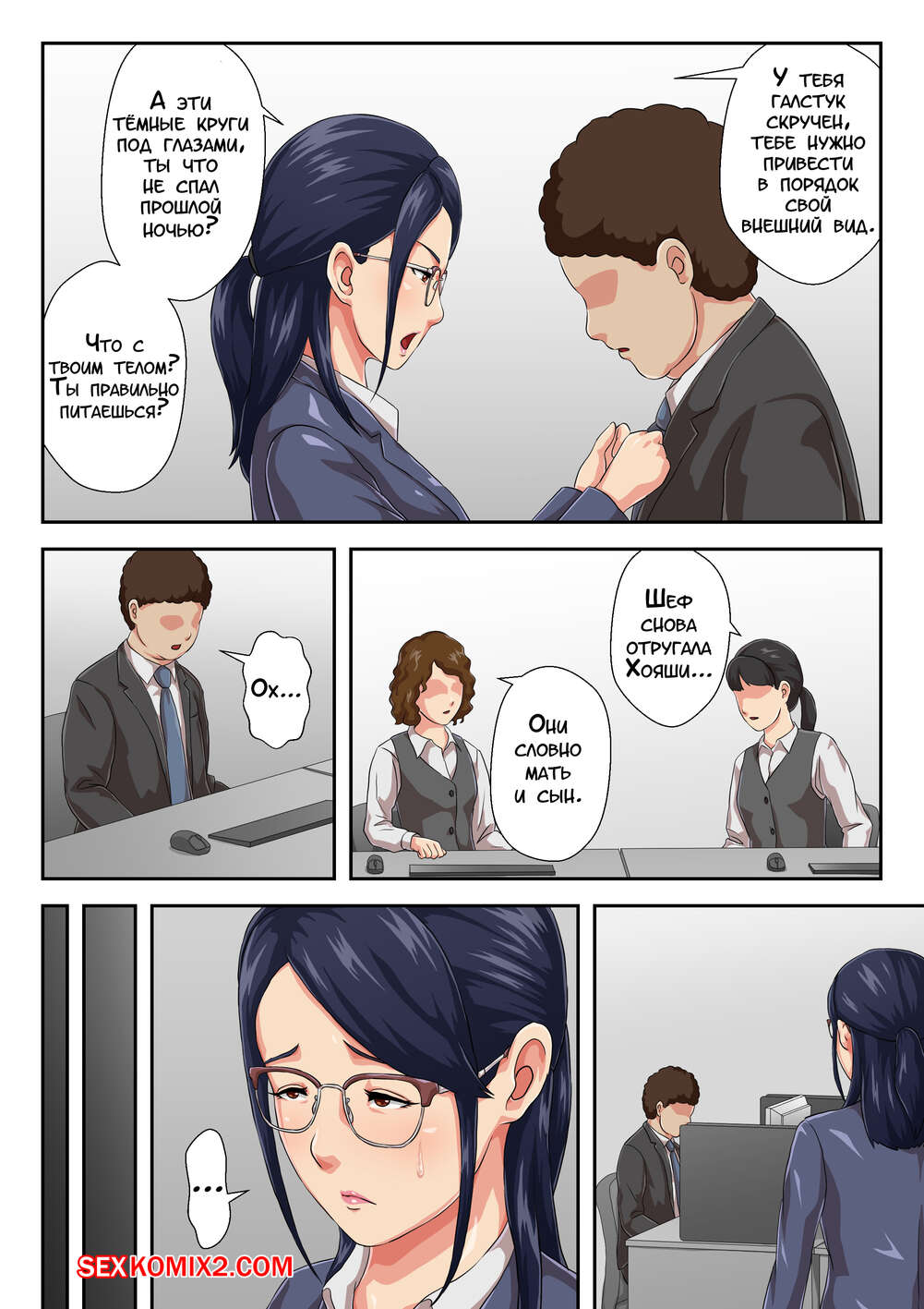 Порно комикс Моя начальница моя мама, с которой меня разлучили. Kumo No Ito Сексуальная брюнетка милфа была очень возбуждена и хотела трахаться. Она разделась перед своим сыном и отсосала его большой хуй, после чего дала ему себя хорошенько выебать.