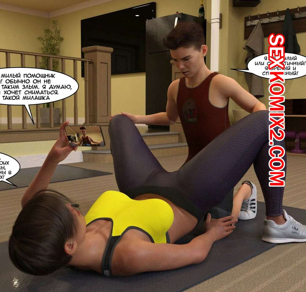 Порно комикс Как стать порнозвездой. Часть 3. How to become a pornstar. Nethoc Горячая мамка осталась дома наедине со своим сыном и попросила его ей помочь. Красотка стала выполнять упражнения, а парень помогал ей и снимал все на видео.