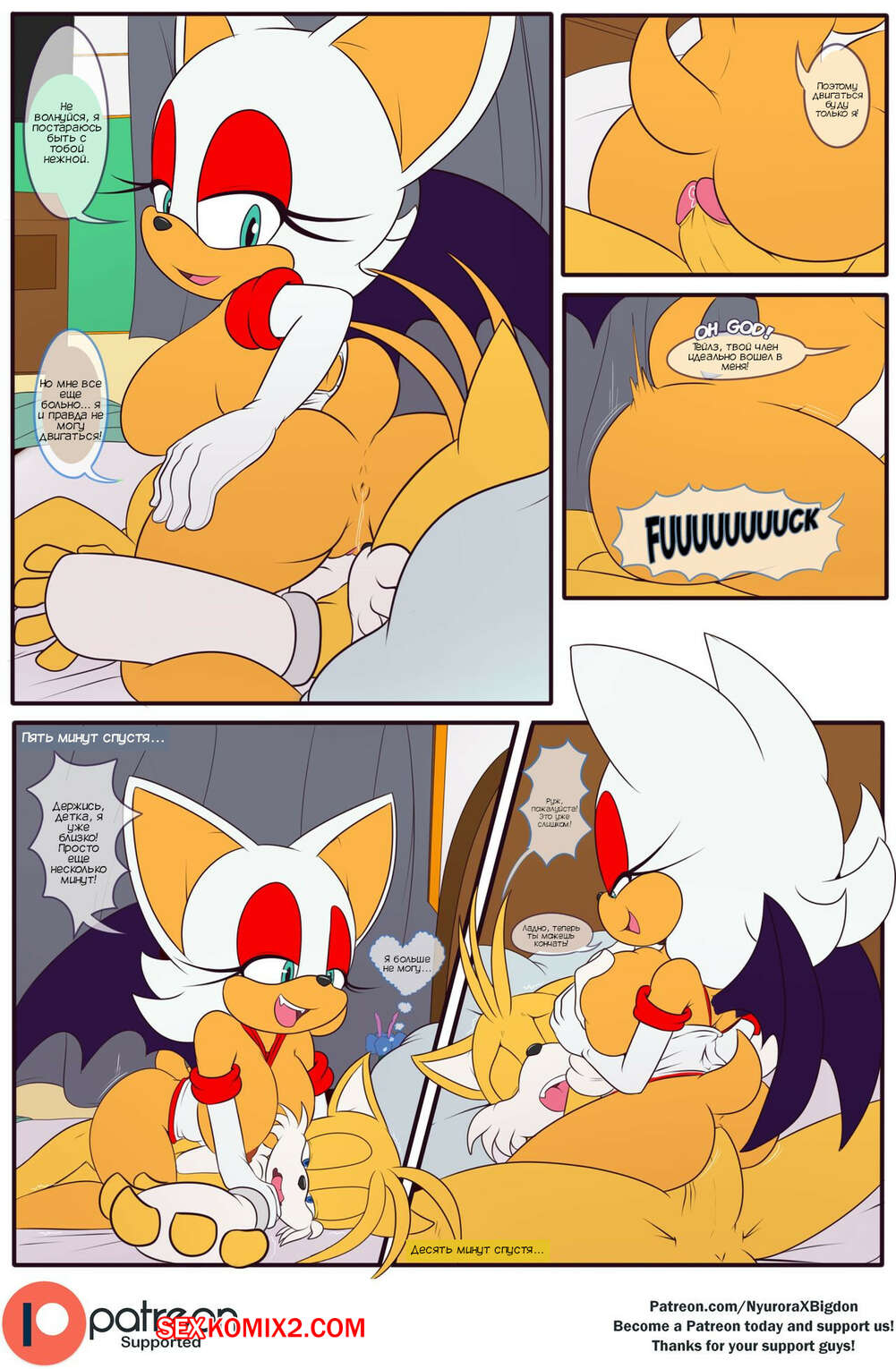 Порно комикс Соник. Лечение Тейлза. Tails Treatment. nyuroraxbigdon Тейлз приболел и Руж пришла к нему, чтобы заняться лечением парня. Красотка отсосала большой хуй лисенка, после чего дала ему себя хорошенько выебать и кончить в нее.