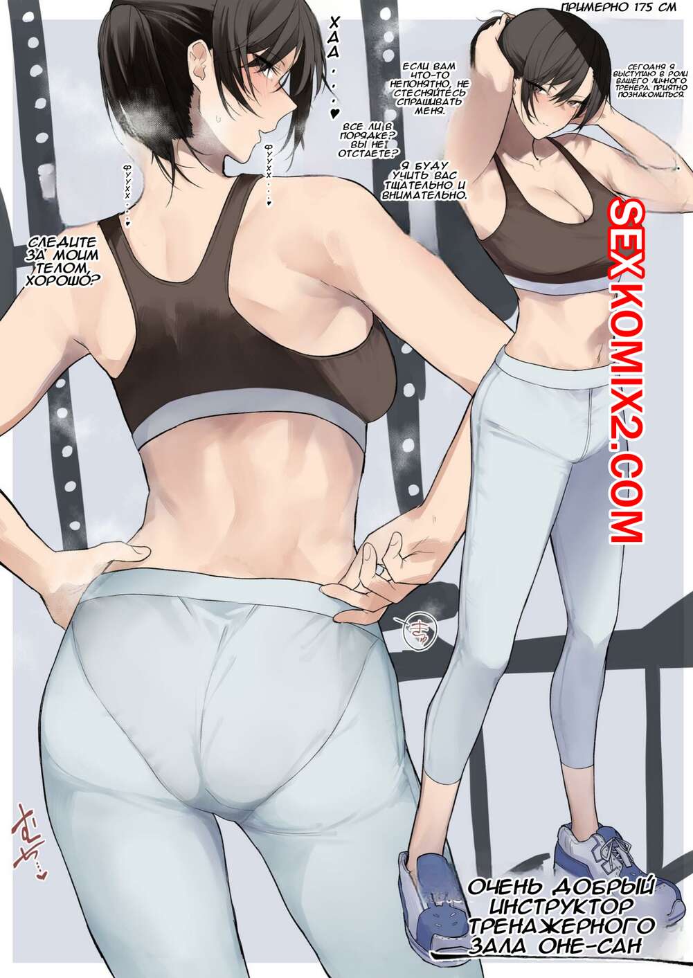 Порно комикс Добрый инструктор тренажерного зала Онесан беспокоится обо мне. Okyou Молодой парень пришел в тренажерный зал, где с ним решила повеселиться горячая красотка тренер. Она разделась и возбудила парня, после чего дала ему себя хорошенько выебать.