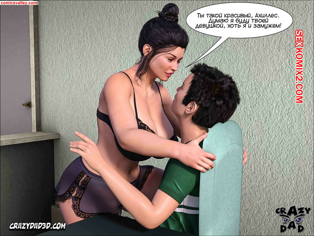 Порно комикс Помощь мамы. Часть 13. Moms Help. CrazyDad3D Ахиллес пришел в гости к Нэнси и они остались дома наедине. Красотка стала постепенно соблазнять парня и заигрывать с ним, чтобы стать его девушкой и заняться сексом.