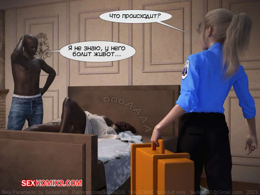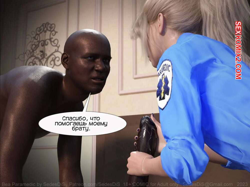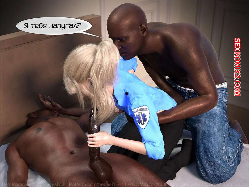 Порно комикс Биа фельдшер. Bea Paramedic. Часть 1. SedesDiS. Сексуальная блондинка Биа прибыла на вызов к двум темнокожим парнем. У одного сильно болел живот изза стояка, поэтому красотке пришлось раздеться и дать ему и его брату выебать ее во все дырочки.