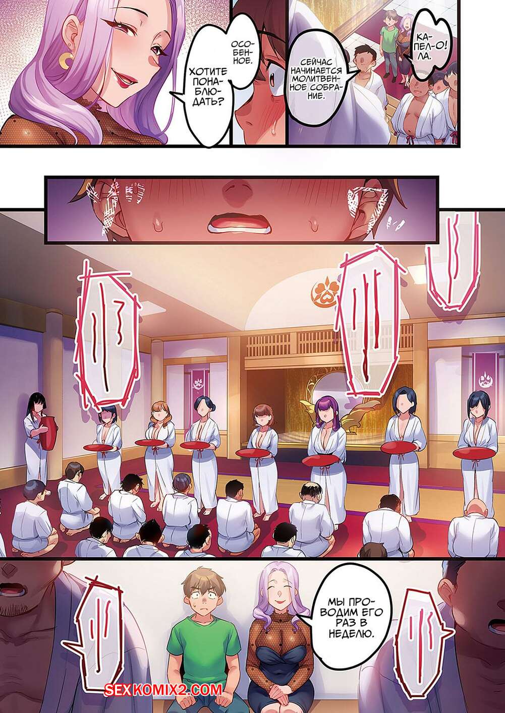 Порно комикс Посещение с изнасилованием. Часть 2. Houmon Kanyuu. Minamoto Молодой парень пришел в церковь двух дамочек по приглашению. Брюнетка разделась и стала сосать большой хуй парня, после чего дала ему выебать свою пизденку.