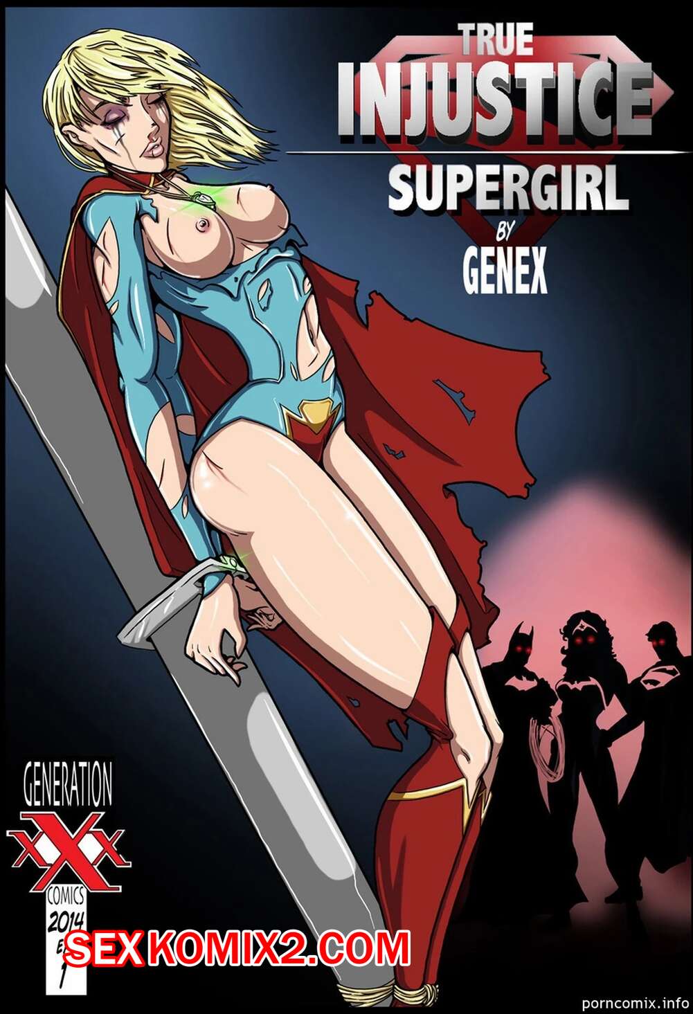 Порно комикс Супергерл. Настоящая несправедливость. Часть 1. True Injustice. Genex Горячая блондинка Супергерл сражается с членами своей команды, которые поддались темной стороне. Парни раздевают девушку и дают ей отсосать свой большой хуй, после чего как следует трахают девушку.