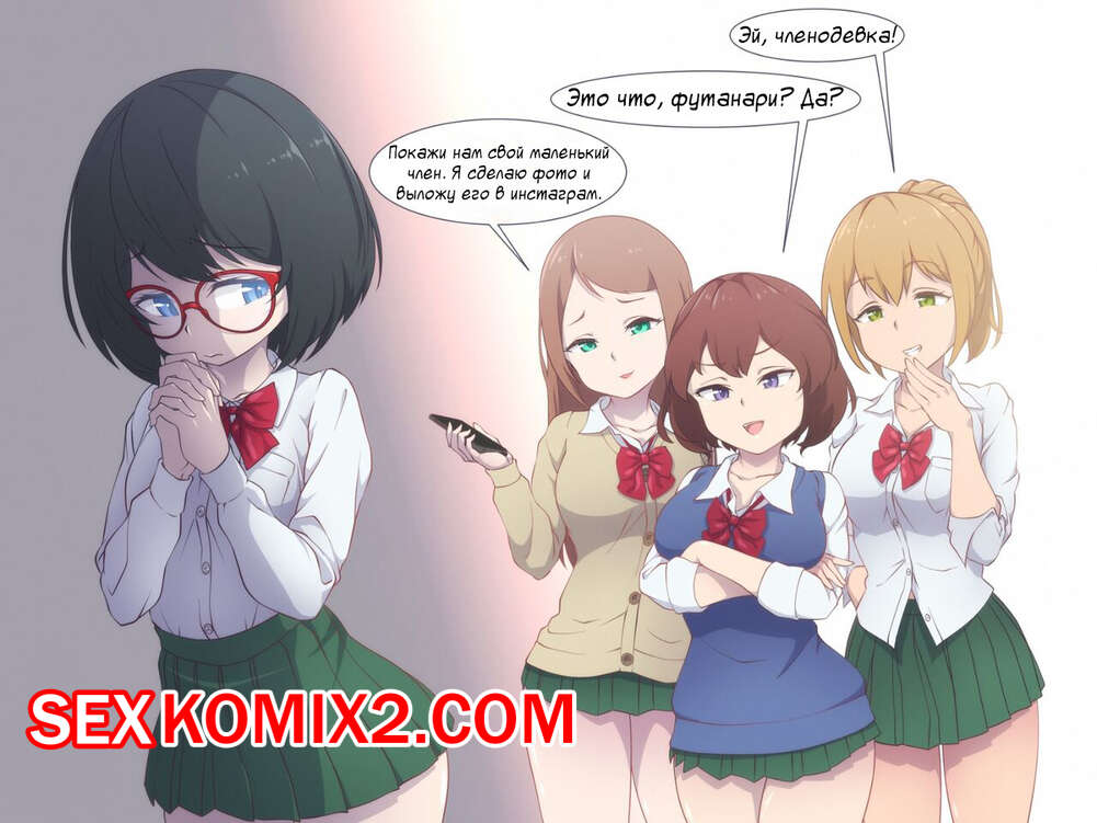 Порно комикс Пристали к юной девочке футанари. Muchin Девушки задирали юную брюнетку, но были шокированы обнаружить у нее огрмоный член. Малышка дала задирам отсосать свой хуй, после чего хорошенько их выебала и заполнила спермой.