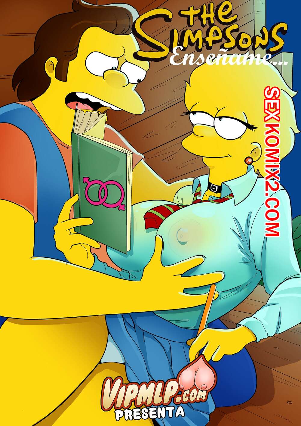 Порно комикс Симпсоны. Научи меня. Enseñame. VIPMLP. Лиза встретилась с Нельсоном, чтобы подготовить его к завтрашнему экзамену. Девушка разделась и стала показывать парню строение женских органов, от чего парень естественно возбудился..