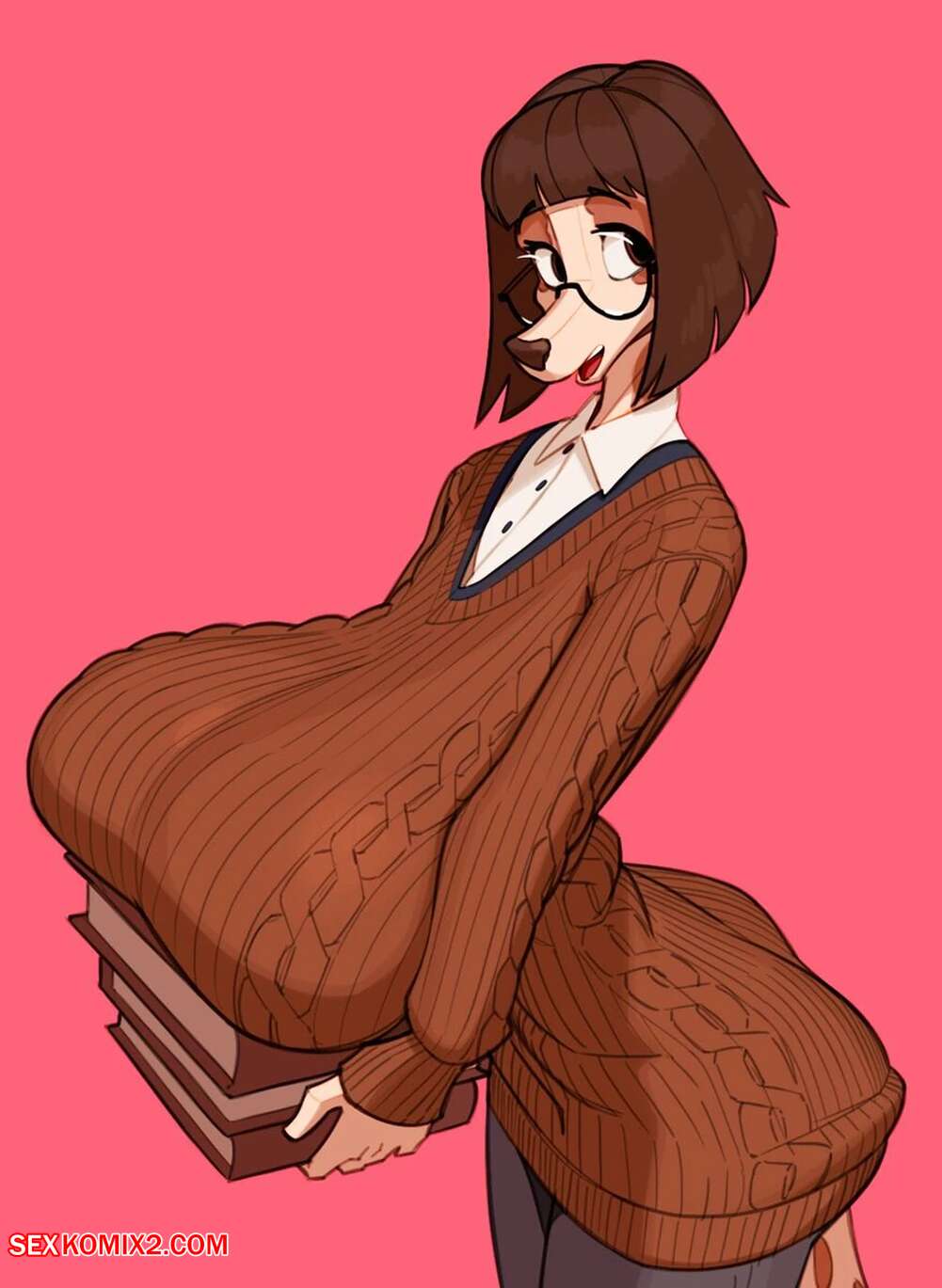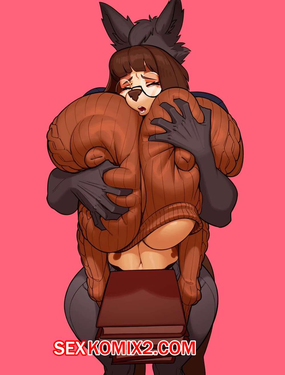Порно комикс Книжная собачка. Book Doggie. Crackiepipe Горячая брюнетка фурри обладает огромными сиськами, котоыре сводят с ума ее коллегу по работе. Парень пристроился к девушке сзади и стал лапать ее сиськи, получая огромное удовольствие.