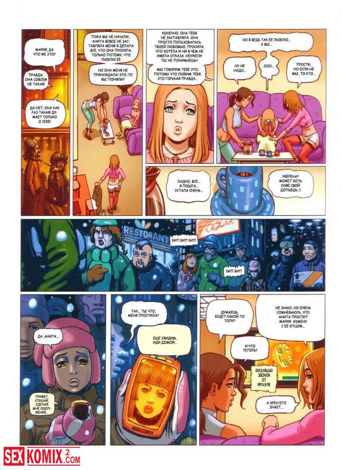 Порно комикс Четыре подружки. Часть 2. Девушка попросила своего парня помочь ей и разобраться с придурком, который пристаёт к её лучшей подруге. А в замен она готова на все чего он захочет.