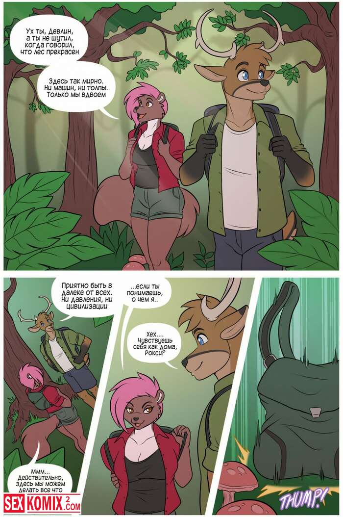 Порно комикс Фурри. Назад к Природе. Парень и девушка выбрались на свежий воздух, чтобы побыть вместе. Они расположились в глубине леса, чтобы им никто не помешал занять сексом.