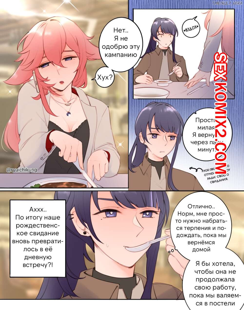 Порно комикс Genshin Impact. Счастливого Рождества. Merry Christmas. Ryuichikung Две подруги праздновали вместе рождество и решили повеселиться. Рыжая девушка разделась и возбудила подругу, после чего дала ей выебать свою пизденку.