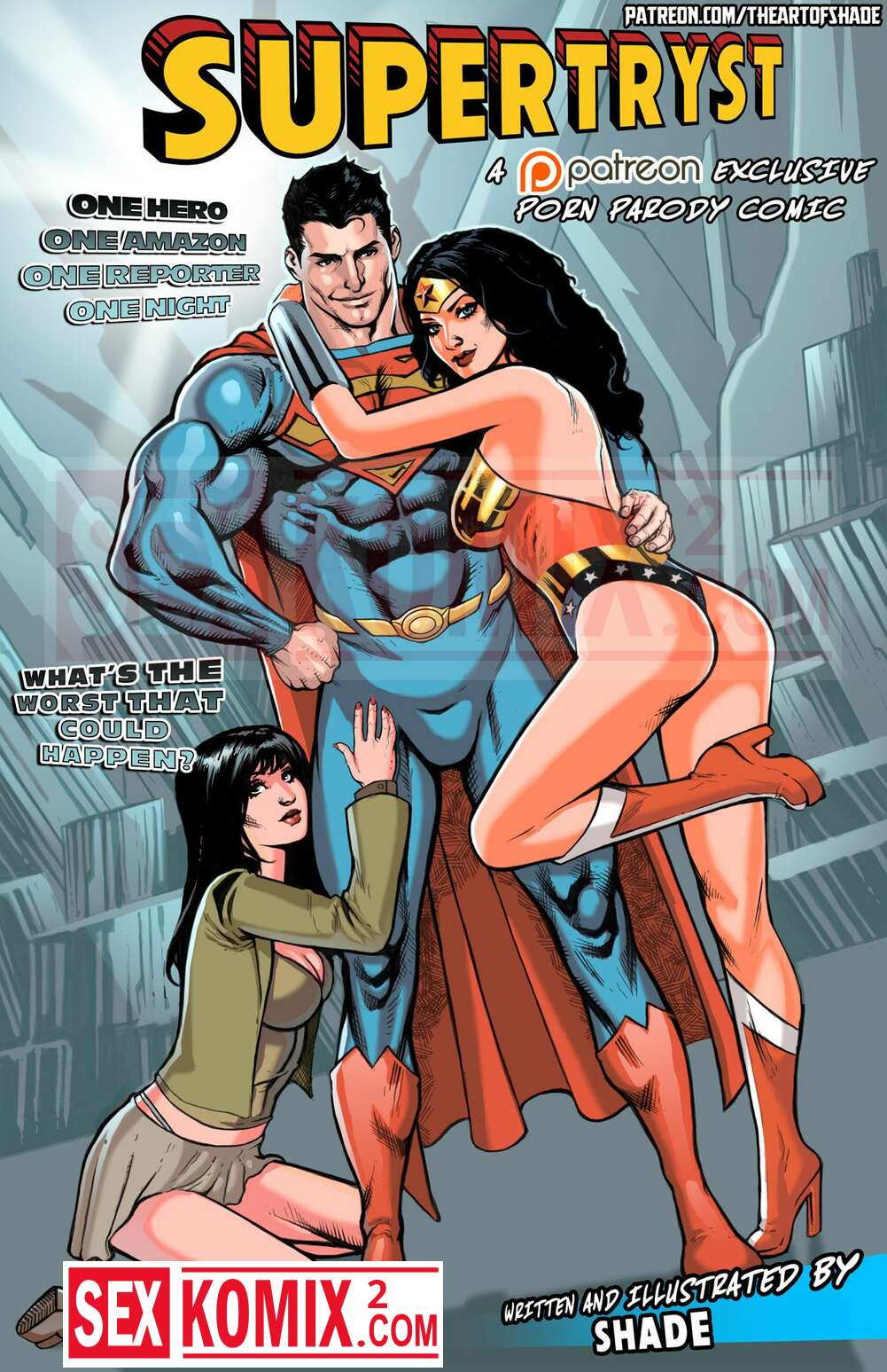 Порно комикс Супертрист. Лига Справедливости. Shade. Супермен соблазнил Чудоженщину и Луис Лейн, он предложил им секс втроем и девушки не могли отказаться. Девушки даже забеременели от него.