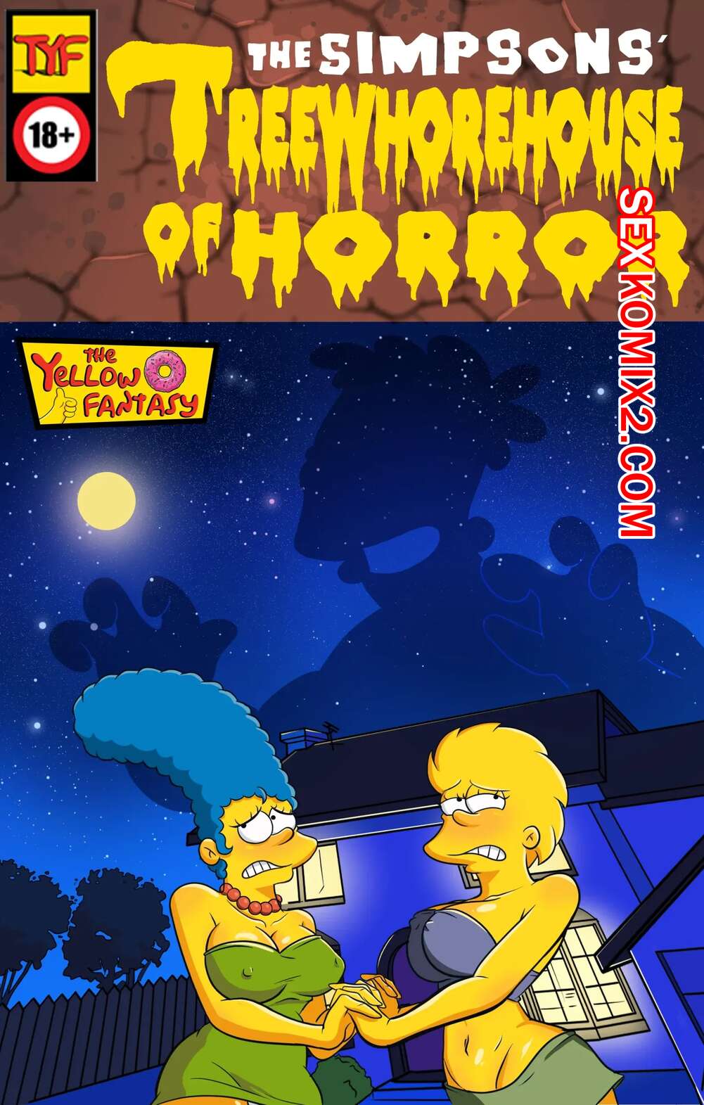 Порно комикс Симпсоны. Желтая фантазия. Шлюший дом ужасов на дереве Барт был очень возбужден ночью и отправился в комнату своих родителей, чтобы повеелиться с Мардж. Он достал свой член и мамка стала его сосать, но парню было мало.