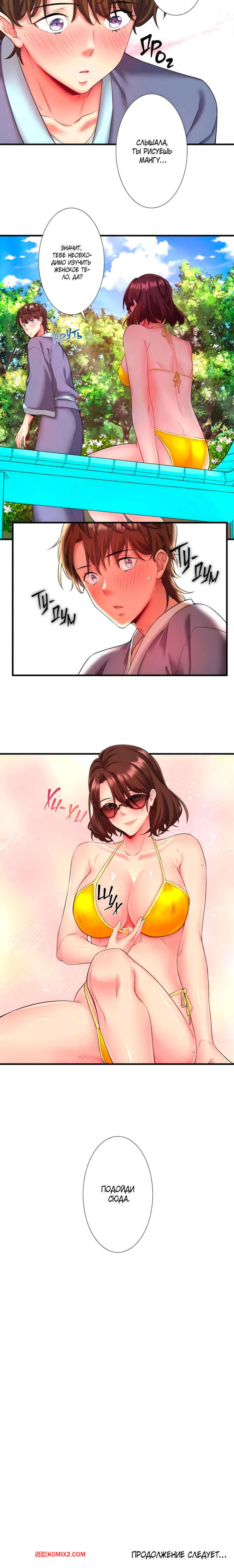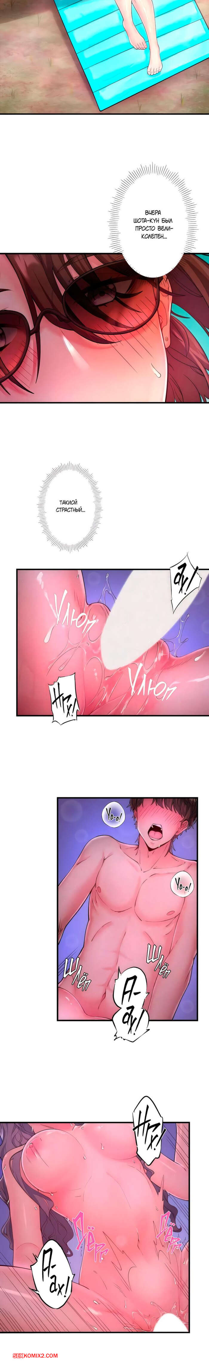 Порно комикс Горячий источник Сакурагецуро. Часть 13. Yozakura Кirishima Горячая брюнетка загорала во дворе в октровенном купальнике. Парнишка увидел ее в таком виде и очень возбудился. Красотка заметила стояк парня и решила пошалить немного.