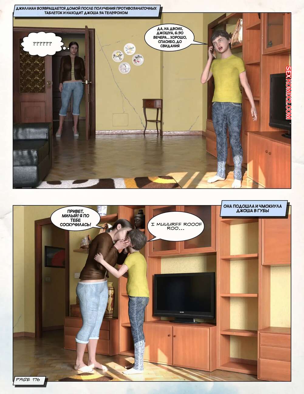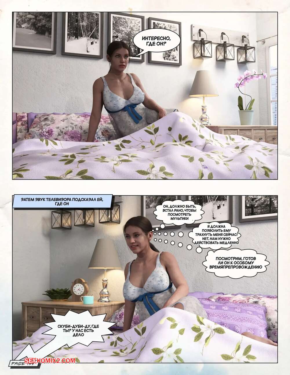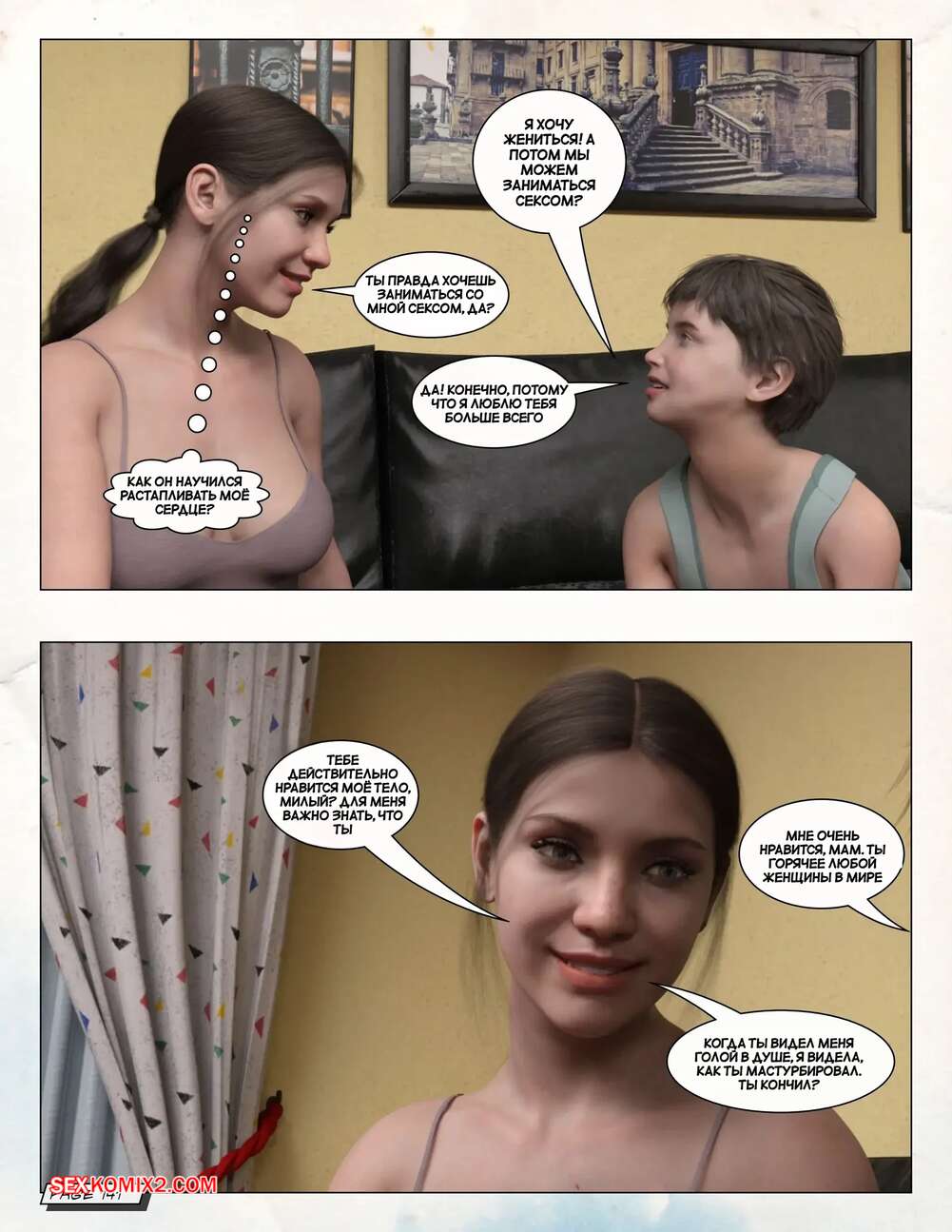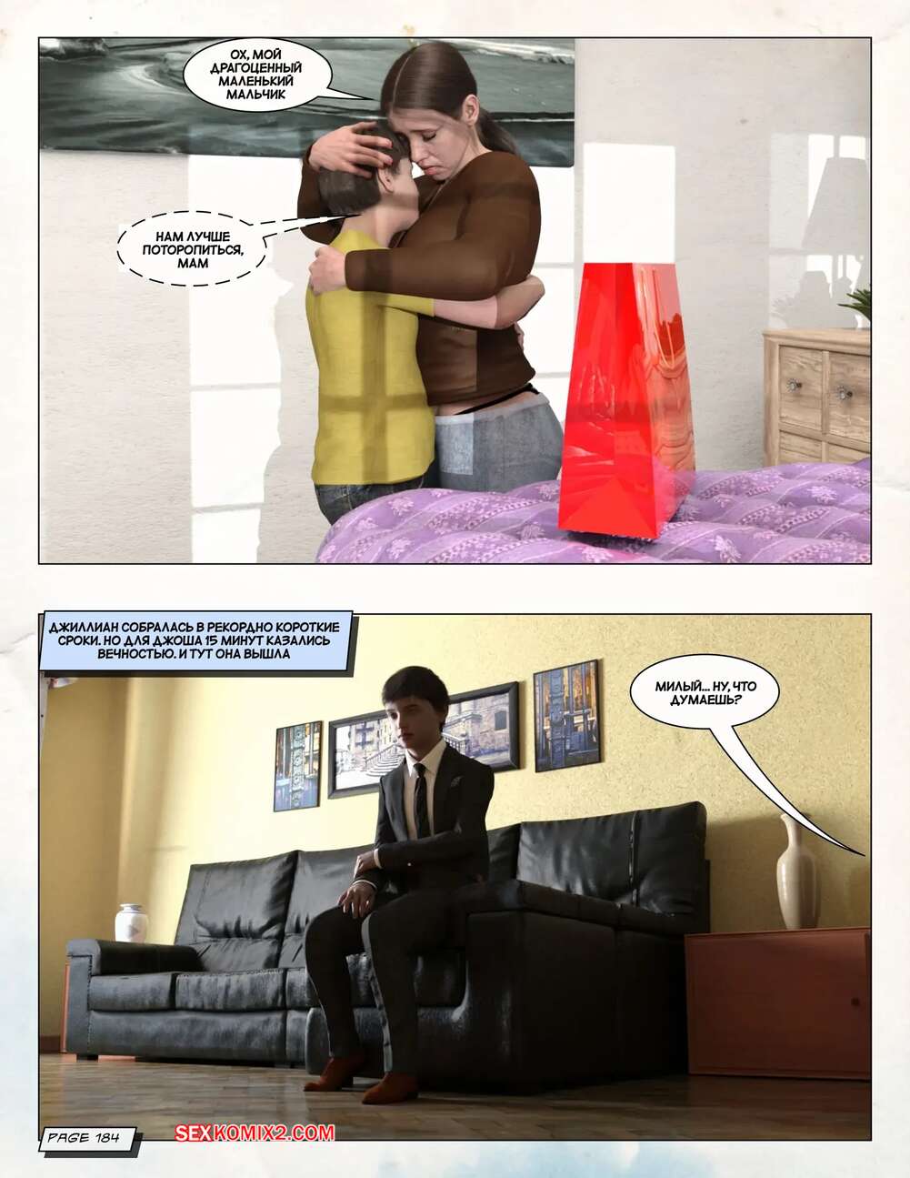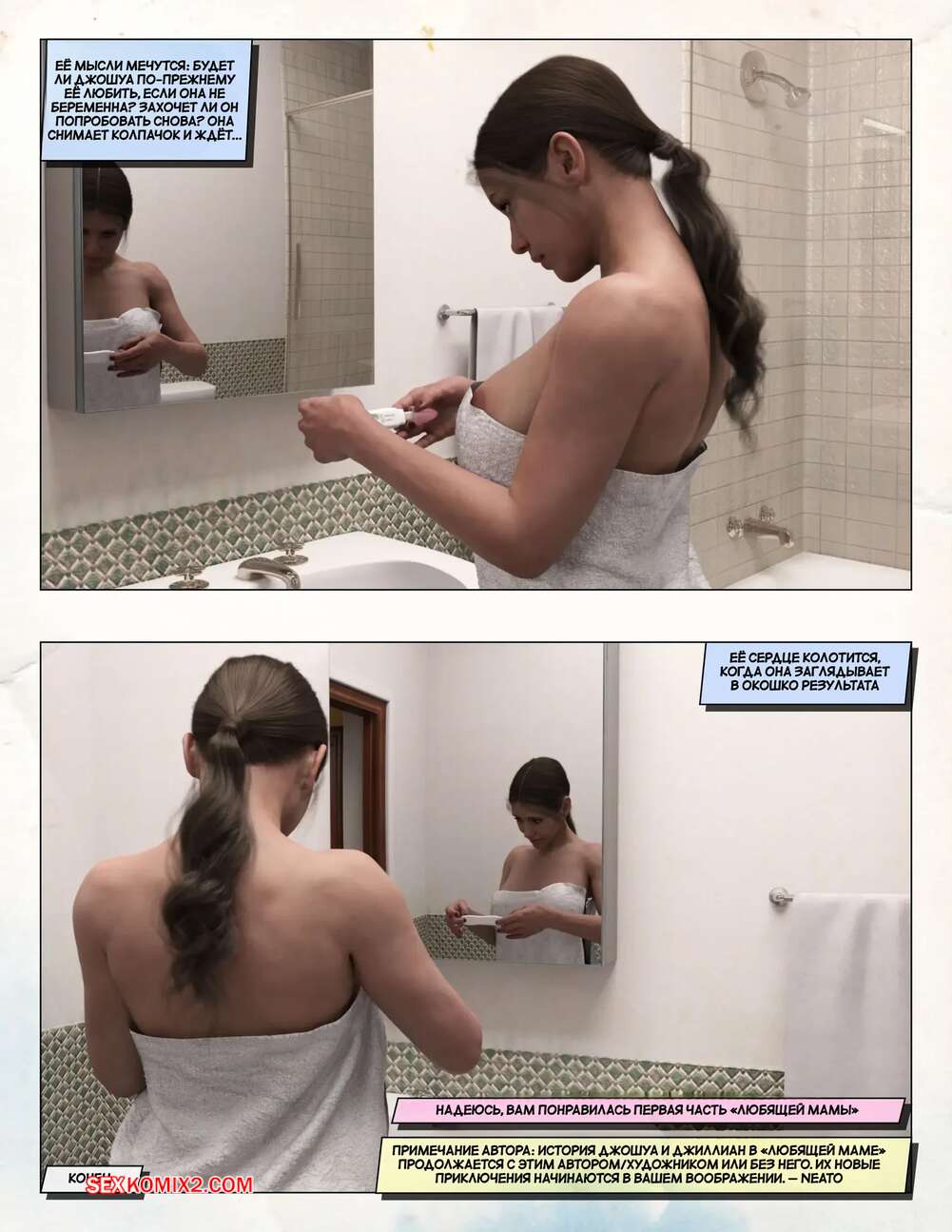 Порно комикс Любящая мама. Часть 3. Loving Mom. The Conflicts. Neato Горячая милфа была очень возбуждена и решила повеселиться со своим сыном. Они разделись и стали ласкать друг друга, после чего красотка раздвинула ножки и дала парню себя выебать.