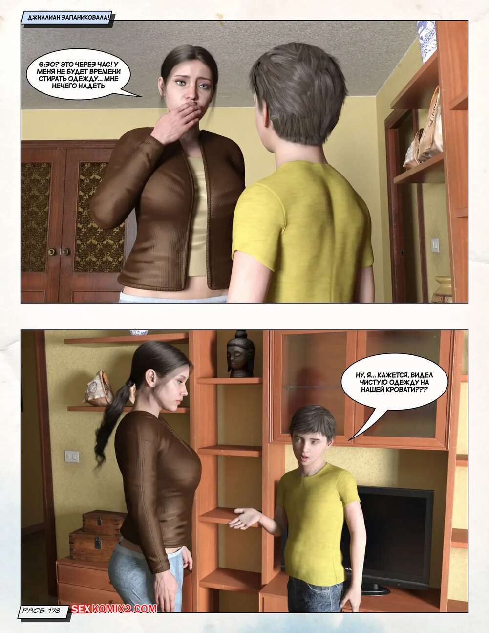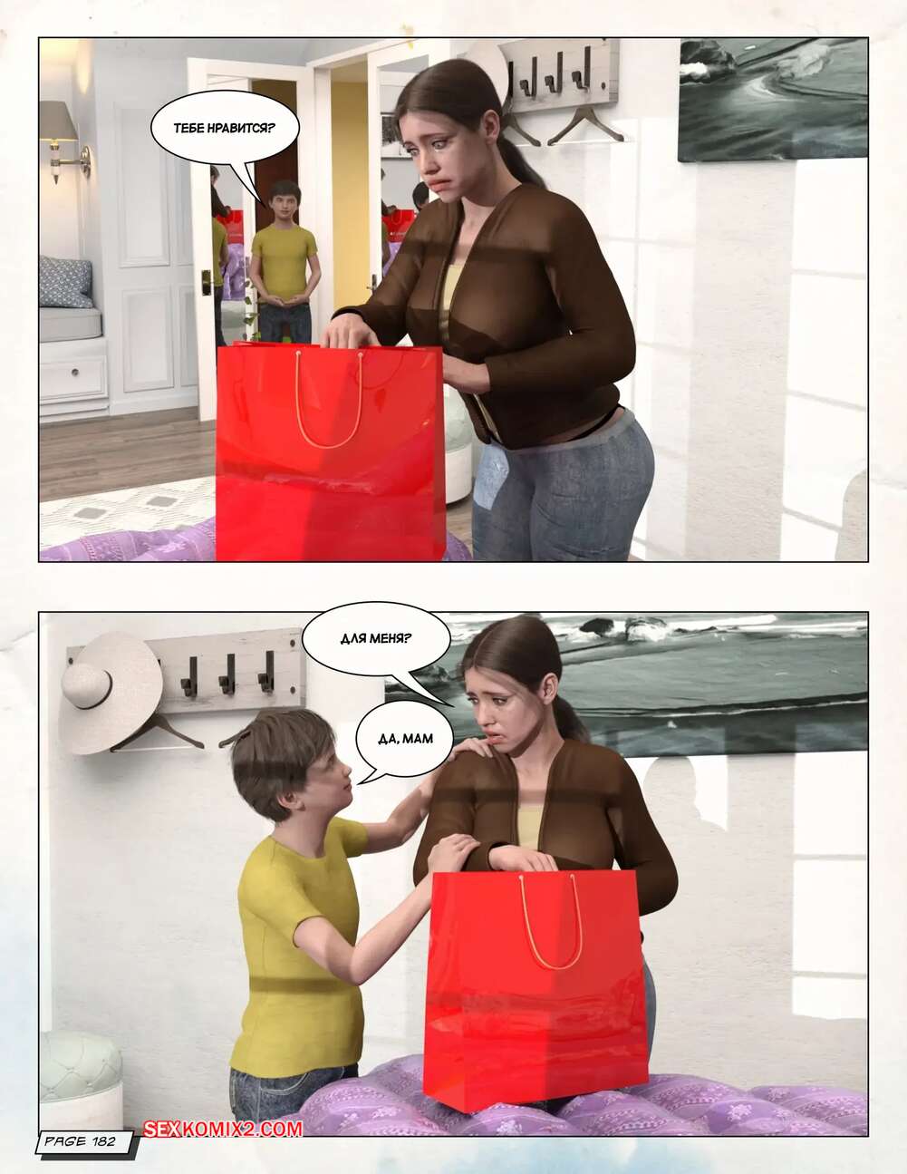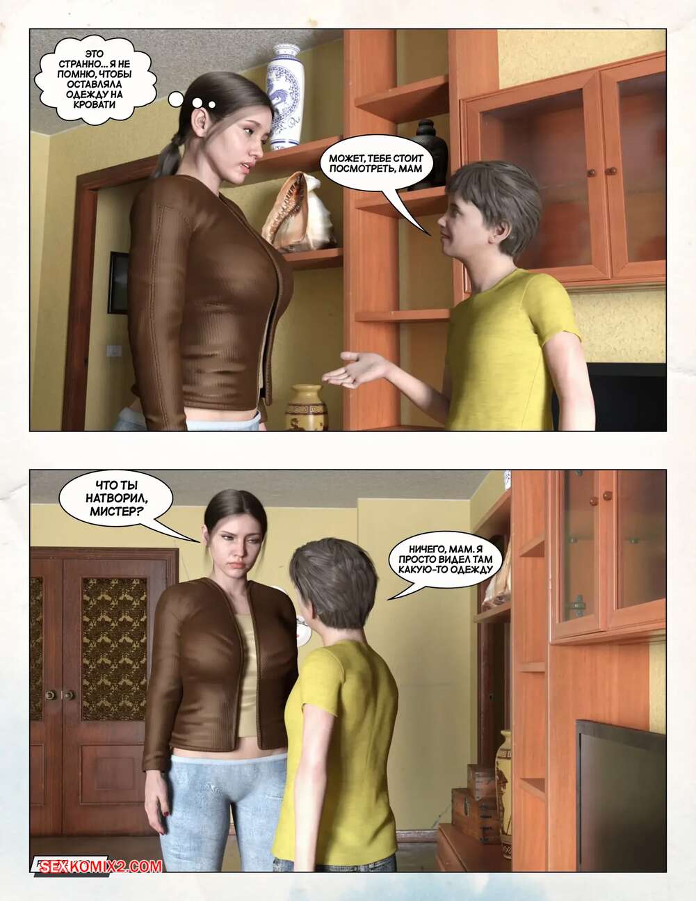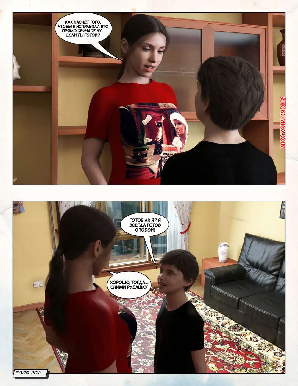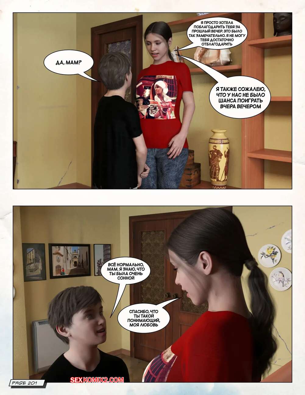 Порно комикс Любящая мама. Часть 3. Loving Mom. The Conflicts. Neato Горячая милфа была очень возбуждена и решила повеселиться со своим сыном. Они разделись и стали ласкать друг друга, после чего красотка раздвинула ножки и дала парню себя выебать.
