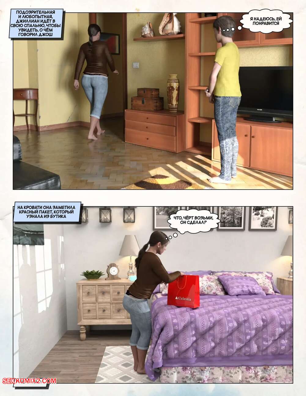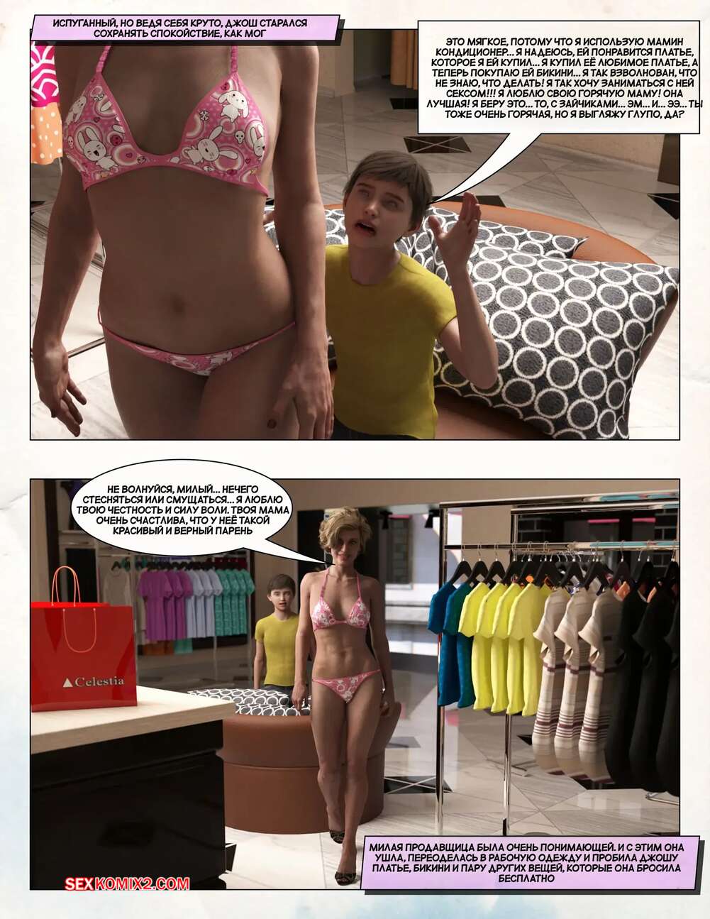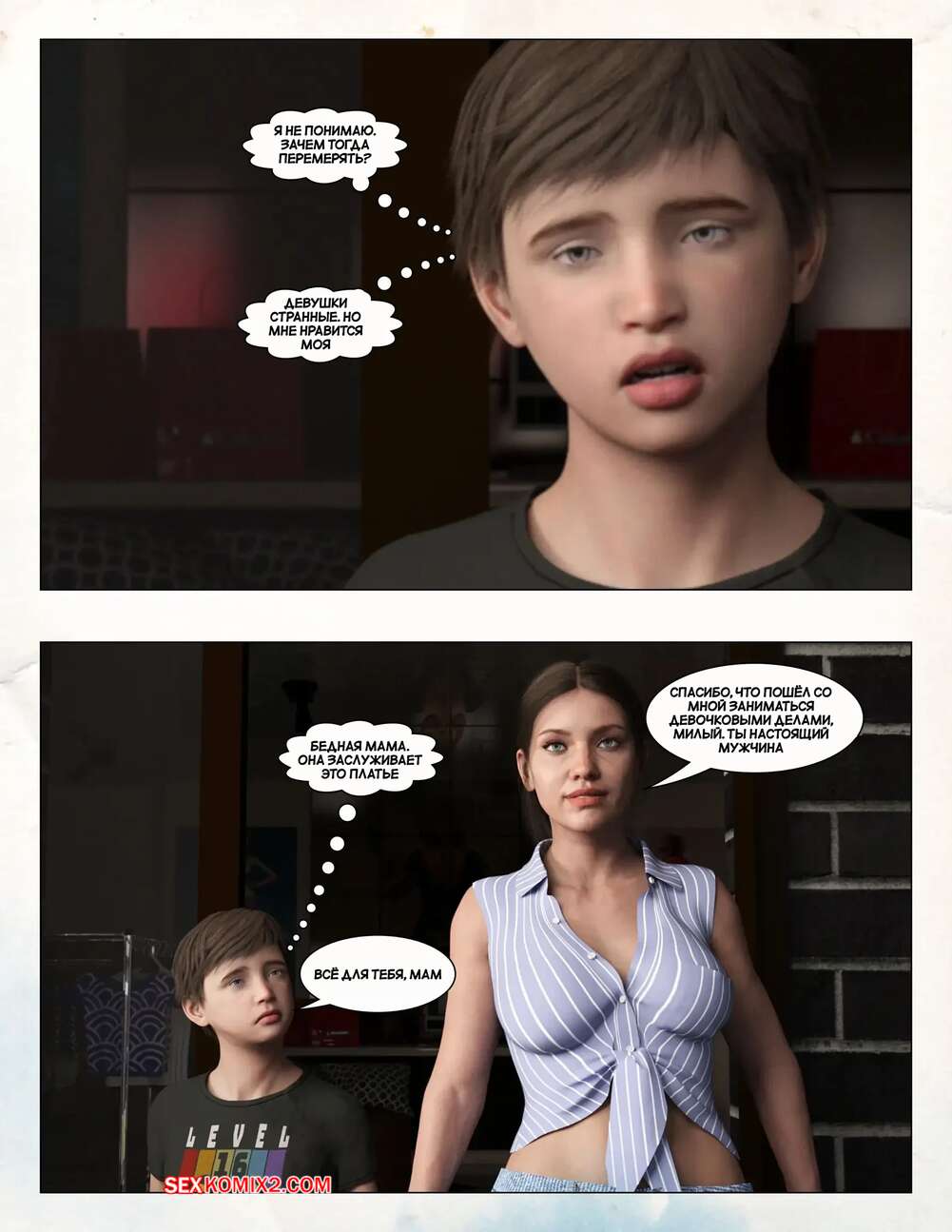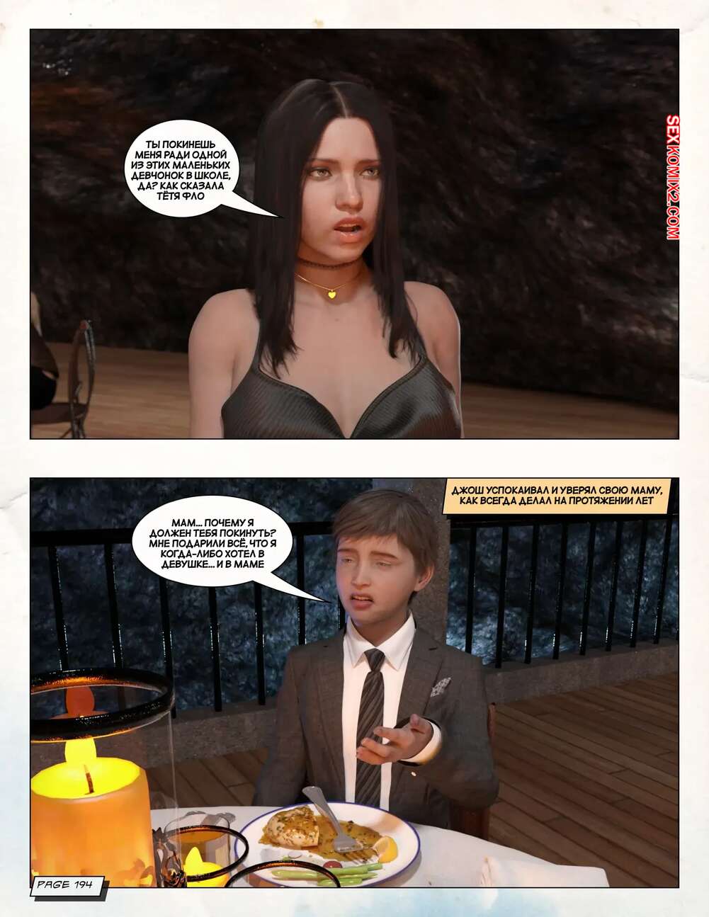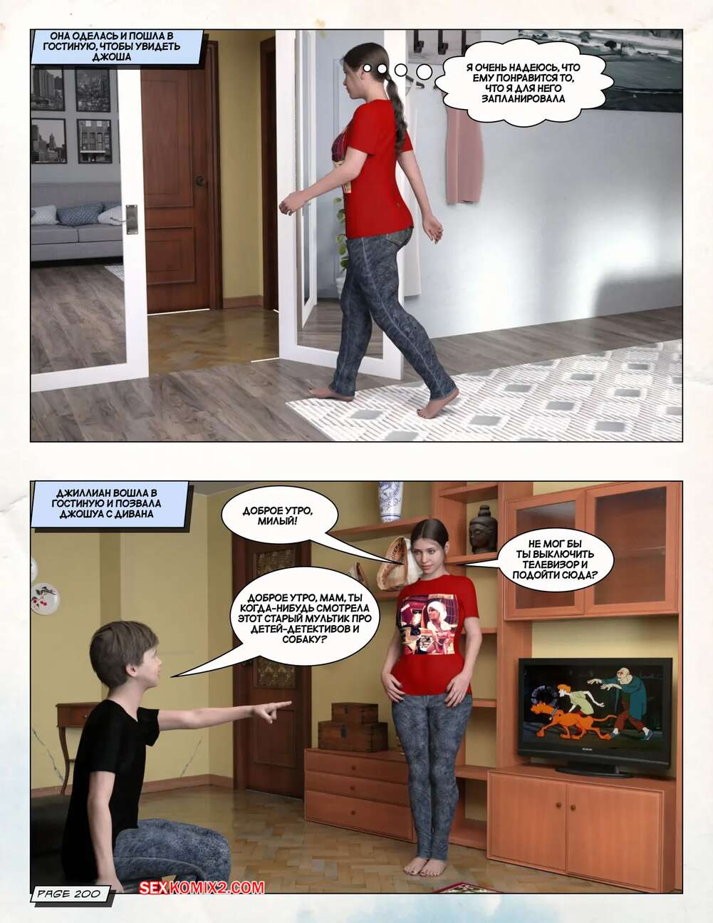 Порно комикс Любящая мама. Часть 3. Loving Mom. The Conflicts. Neato Горячая милфа была очень возбуждена и решила повеселиться со своим сыном. Они разделись и стали ласкать друг друга, после чего красотка раздвинула ножки и дала парню себя выебать.