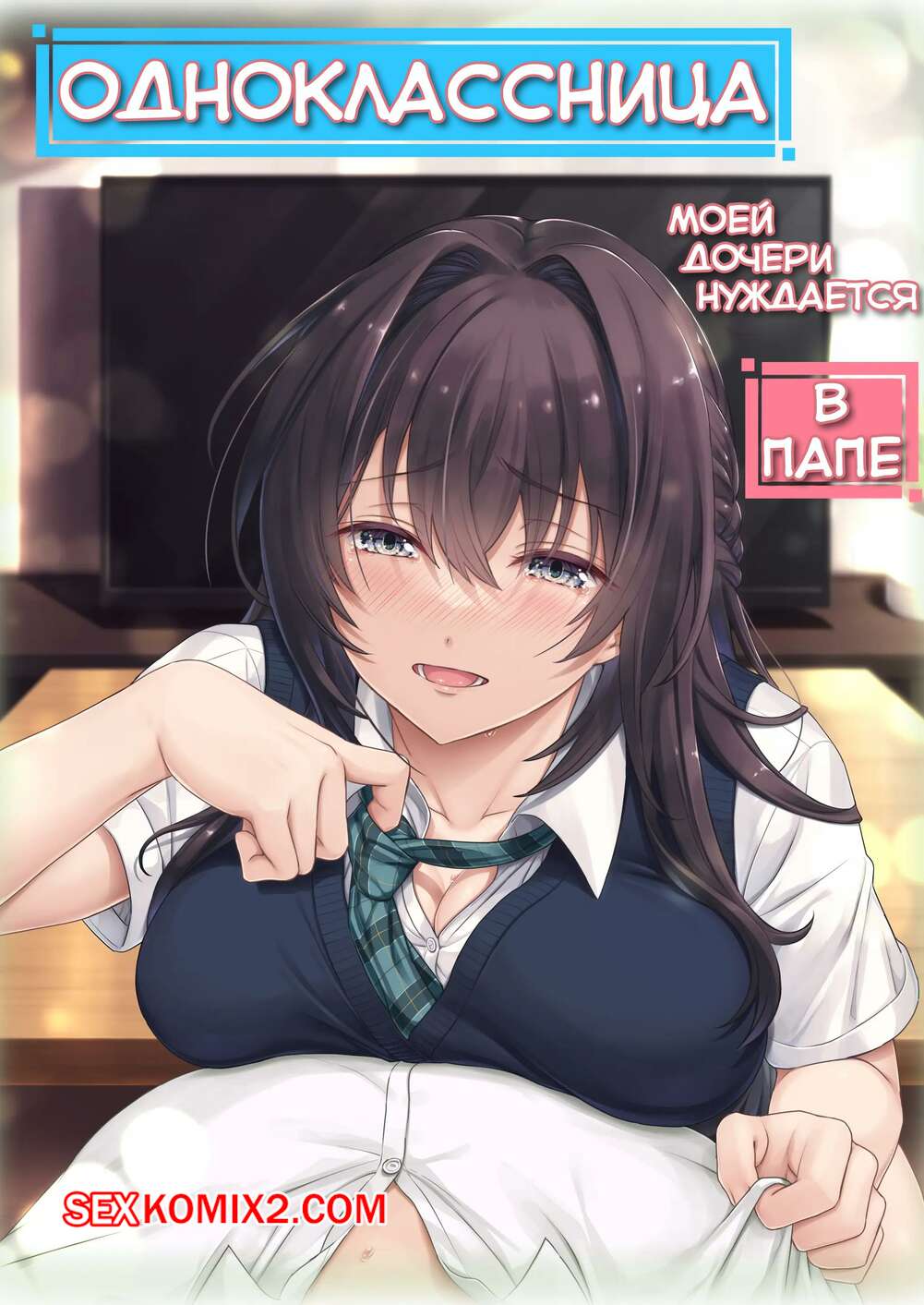 Порно комикс Одноклассница моей дочери нуждается в папе. Mafuyu Hemp Горячая брюнетка влюблена в отца своей подруги. Оставшись с ним наедине, она стала его соблазнять. Мужик стал ласкать сиськи девушки, после чего она оседлала его хуй и дала себя выебать.