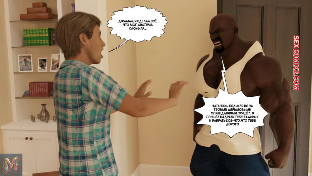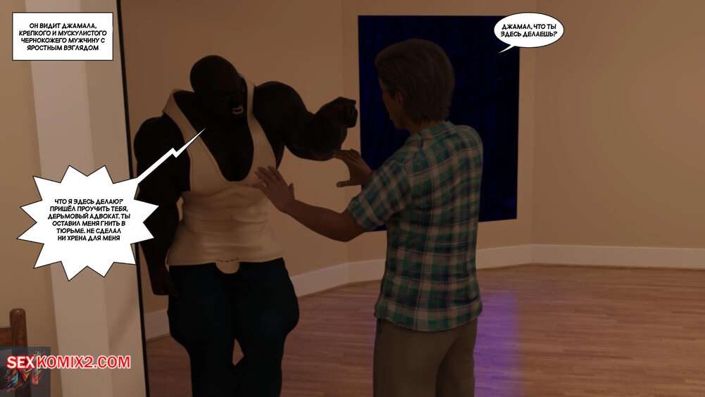 Порно комикс Плотская месть. Часть 1. Venganza Carnal. Megadroide00. Темнокожий парень вышел из тюрьмы и ворвался в дом к своему адвокату, который проиграл дело. Ради мести он избил адвоката, после чего поставил раком его жену и выебал ее пизденку своим огромным хуем.