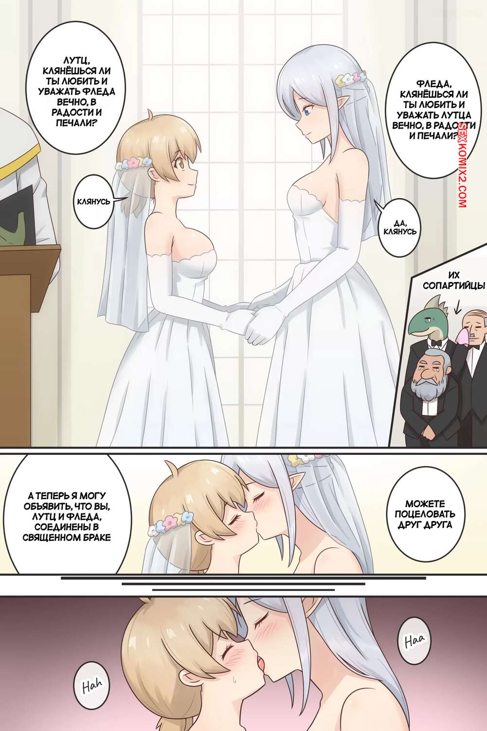 Порно комикс Где нас разделяет время. Where the Time Part Us. Rudy Saki Парень пересился в тело девушки и стал бессметрным. Блондночка много лет ищет свою любимую и делает ей предложение. Они сыграли свадьбу, после чего решили отпраздновать это событие лесбийской еблей.